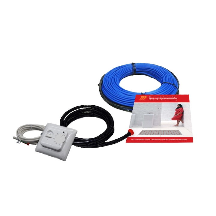 Termostatul are un interval de la +5°C la +40 °C. Pentru a asista ajustarea, termostatul are un LED care se va aprinde ROSU atunci cand incalzirea este PORNITA. Termostatul trebuie setat la setarea de temperatura maxima pana la atingerea temperaturii dorite a camerei sau a podelei. Apoi, butonul de comanda trebuie readus in pozitia initiala pana la stingerea ledului. Pentru adaptarea la cerintele individuale, pot fi realizatereglaje fine in urmatoarele 1-2 zile.
