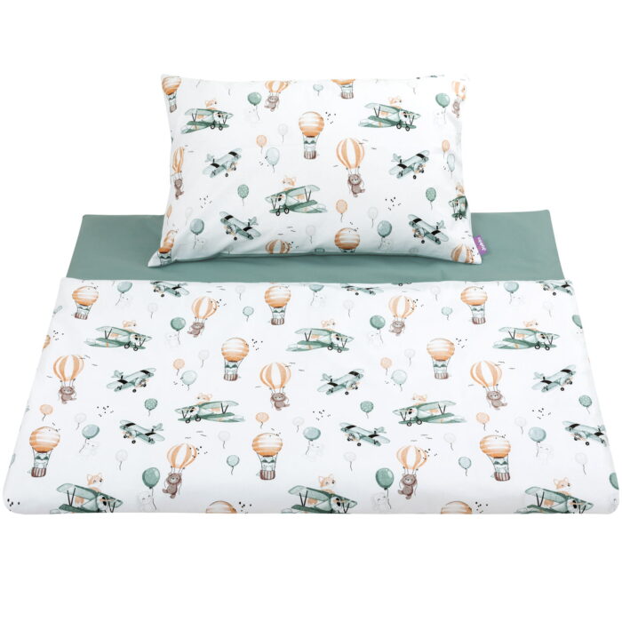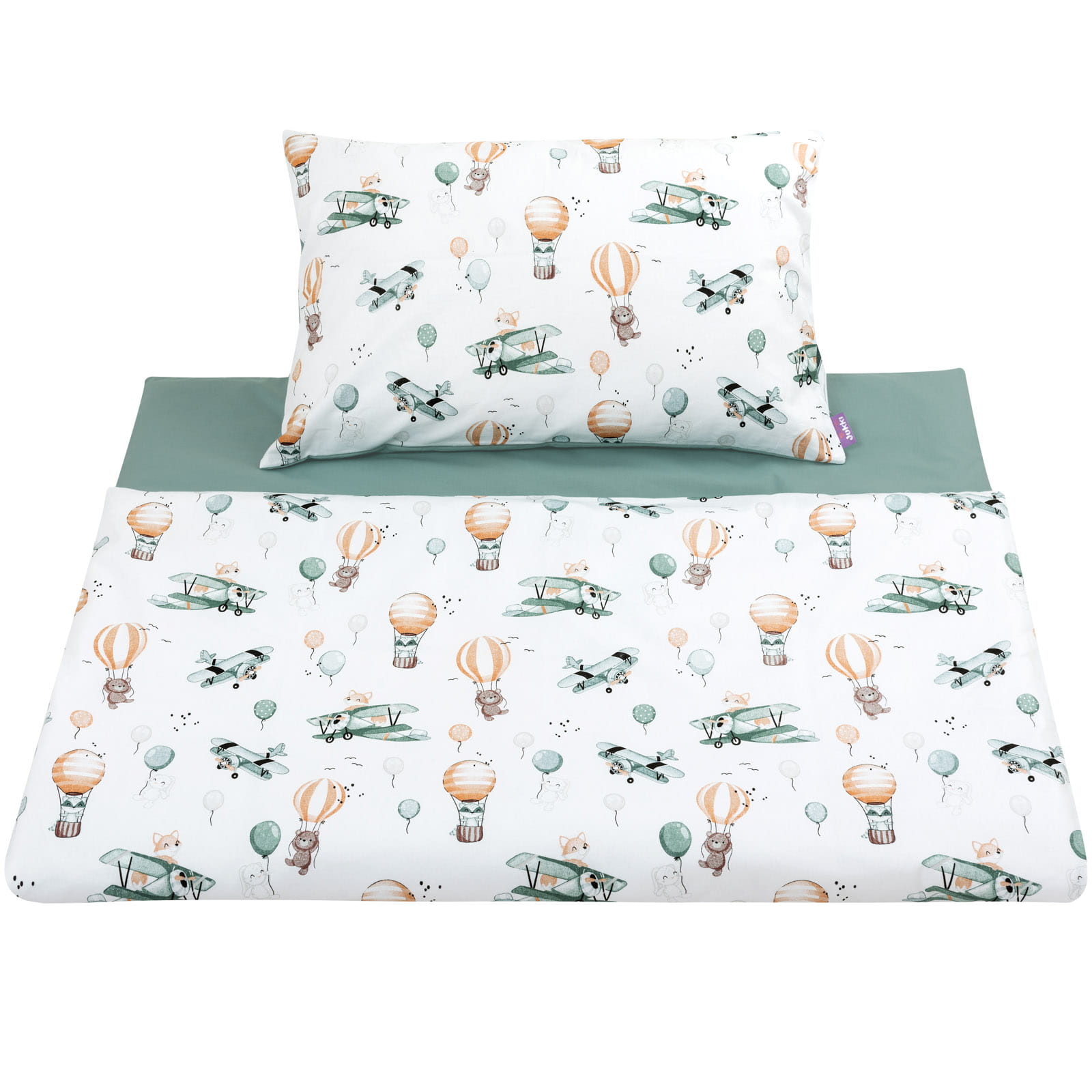 Lenjerie de pat pentru copii, Jukki, Bumbac, 135x100/60x40CM, Alb/Verde