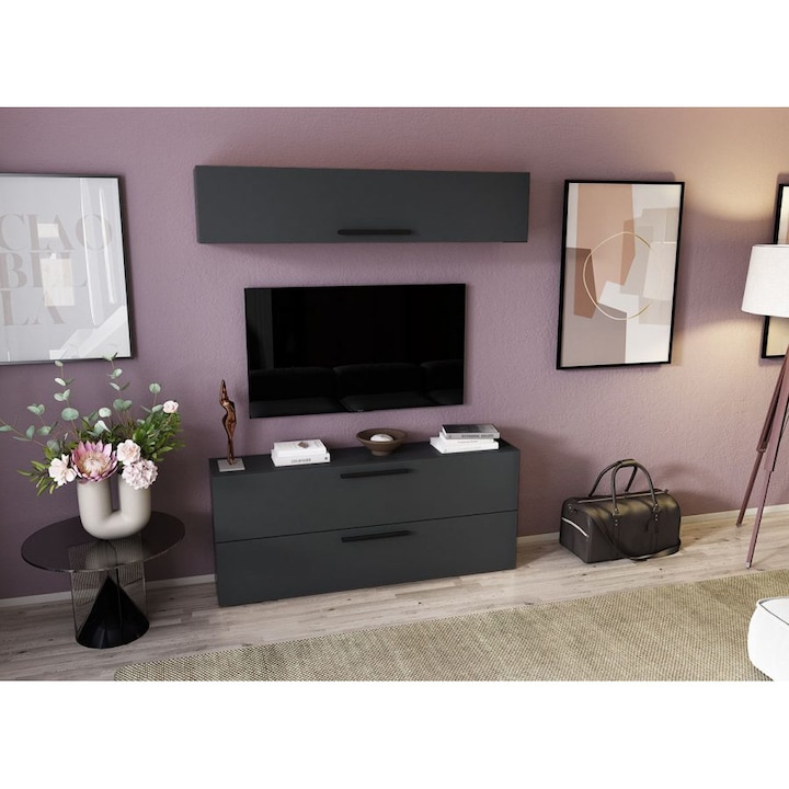 Spatiul de TV: diagonala maxima 139 cm. Toate corpurile se pot pune pe stanga sau pe dreapta in functie de cum doriti.
