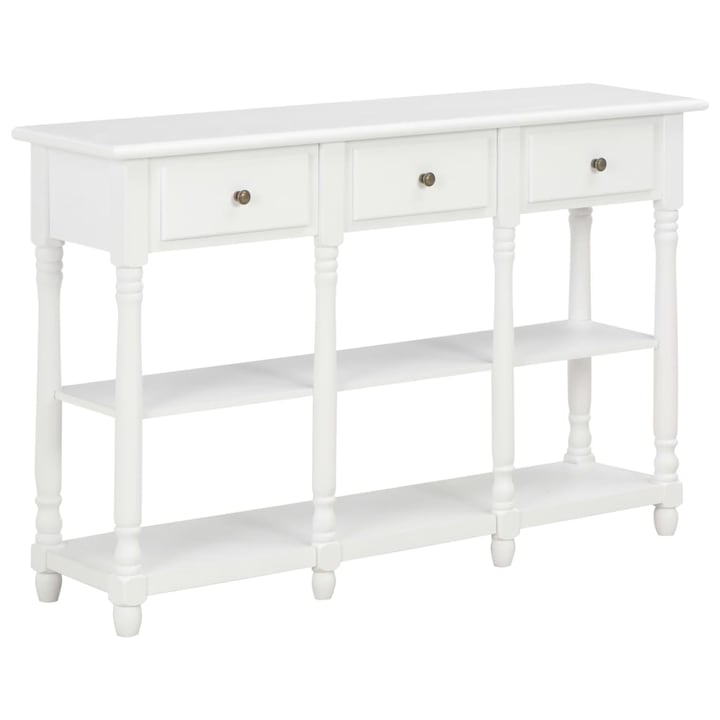 Masa consola Zakito Europe, 3 sertare, 2 polite, alb, 110x30x76cm