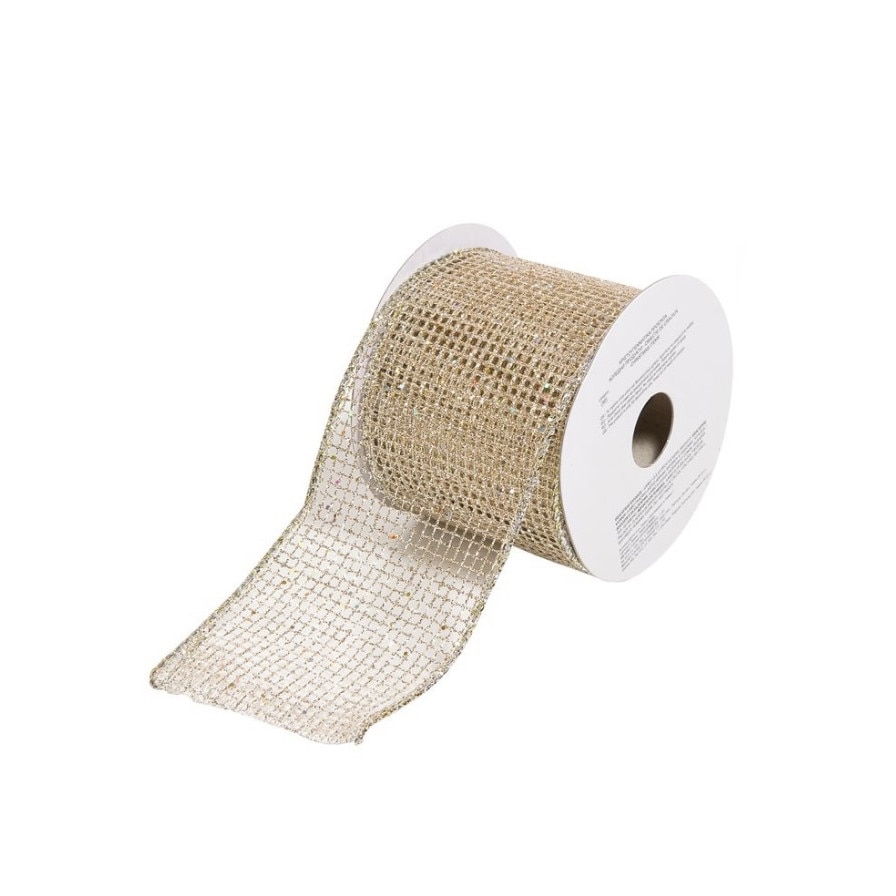 Panglica de Craciun bej sampanie cu model plasa.