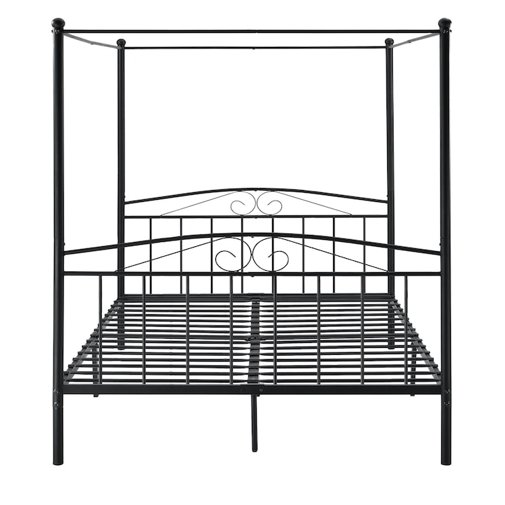 Home Mobila Dormitor Paturi Pat baldachin Lahti 180 cu saltea spuma rece, en.casa, 200 x 180 cm, otel, negru, dublu