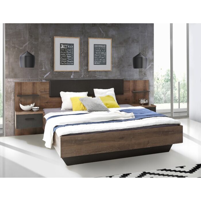 Pat cu noptiere Kring Bronx, Stejar/ Stejar Antracit, 256x94x206 cm