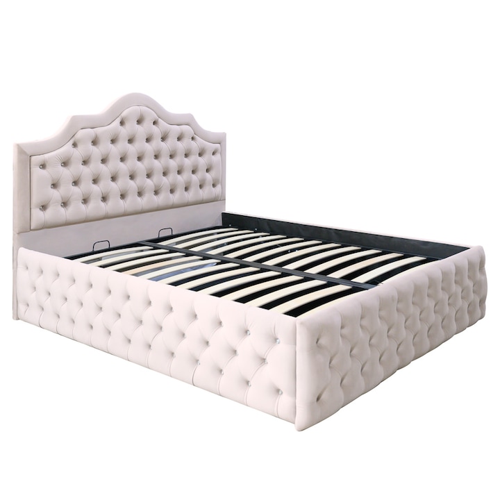 Structura patului este formata din lemn si pal melaminat. Aceasta este acoperita cu spuma poliuretanica in grosime de 50 mm si vatelina, urmata de stratul final reprezentat de o catifea fina si, totodata, usor de intretinut. Somiera este fixata pe lateralele dublate ale patului in grosime de 40 mm, dobandind astfel o rezistenta crescuta in timp.