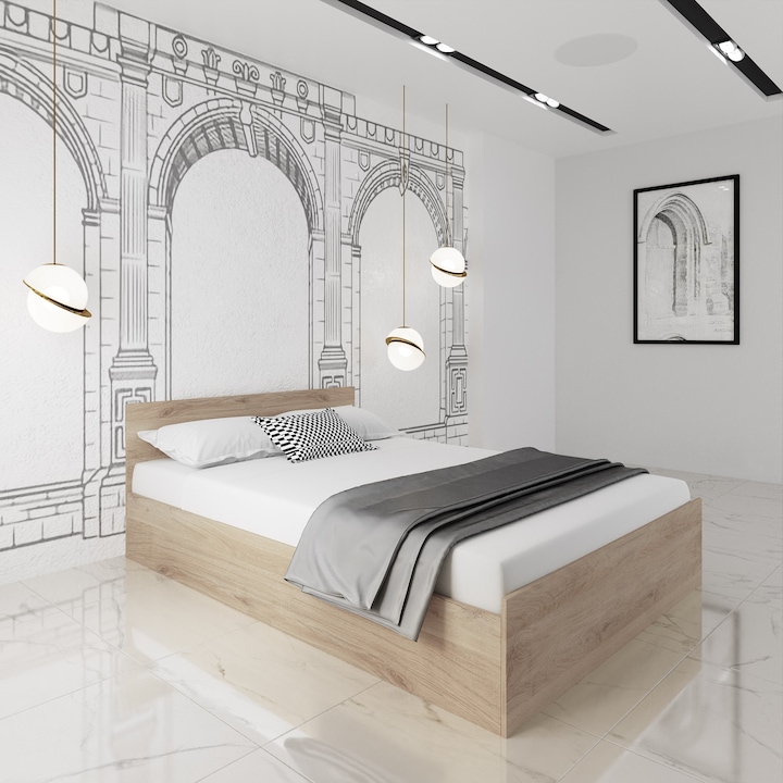 Pat Irim Krasy 140×200 cm, suport saltea, culoare Sonoma