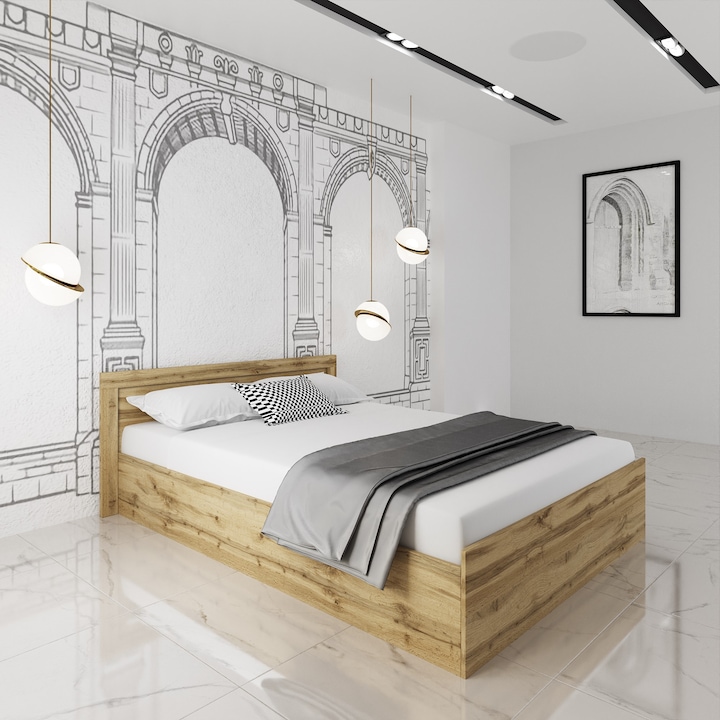 Pat Irim Kristofer 140×200 cm, suport saltea, culoare Stejar Dakota
