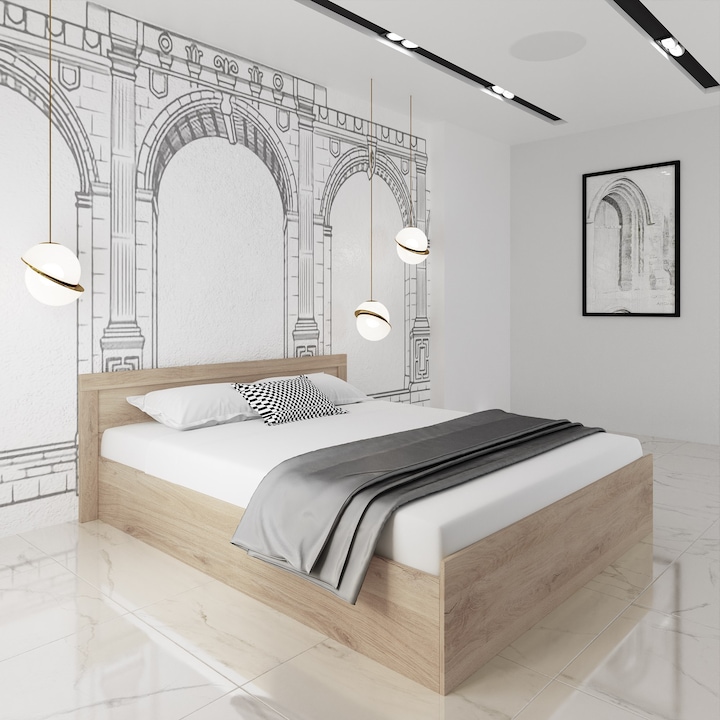 Pat Irim Kristofer 160×200 cm, suport saltea, culoare Sonoma