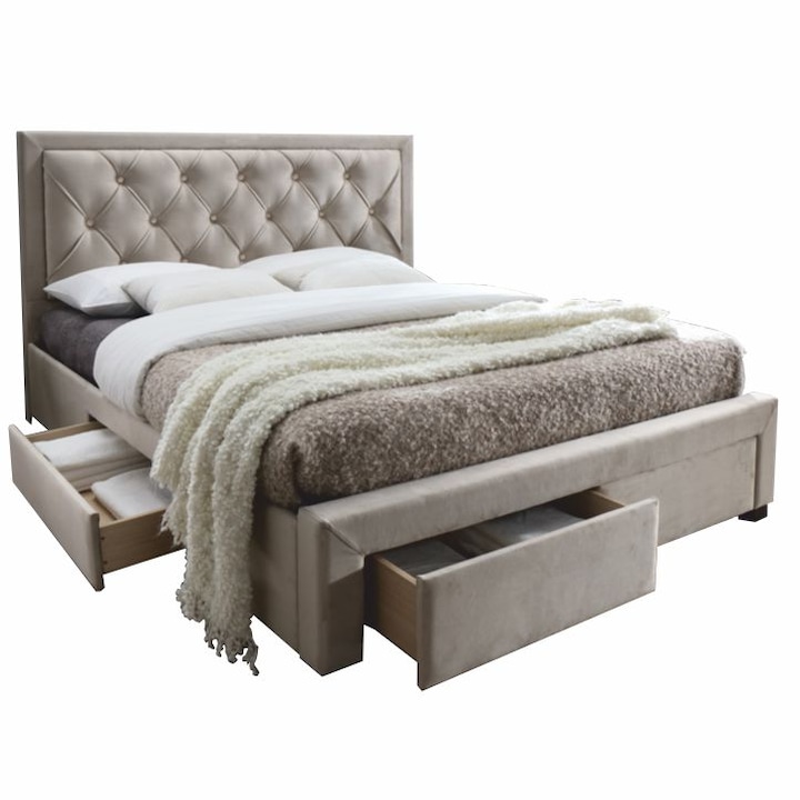Pat matrimonial modern cu 4 sertare de depozitare culoare maro cu gri, 160×200