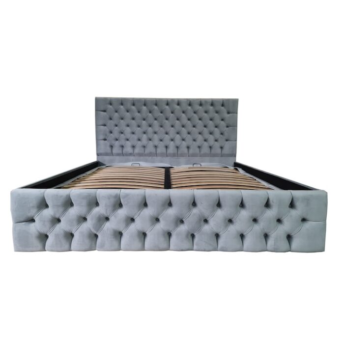 Pat dublu tapitat Georgia, 180/200 cm, gri inchis cu benzi aurii, cu somiera metalica rabatabila si spatiu de depozitare