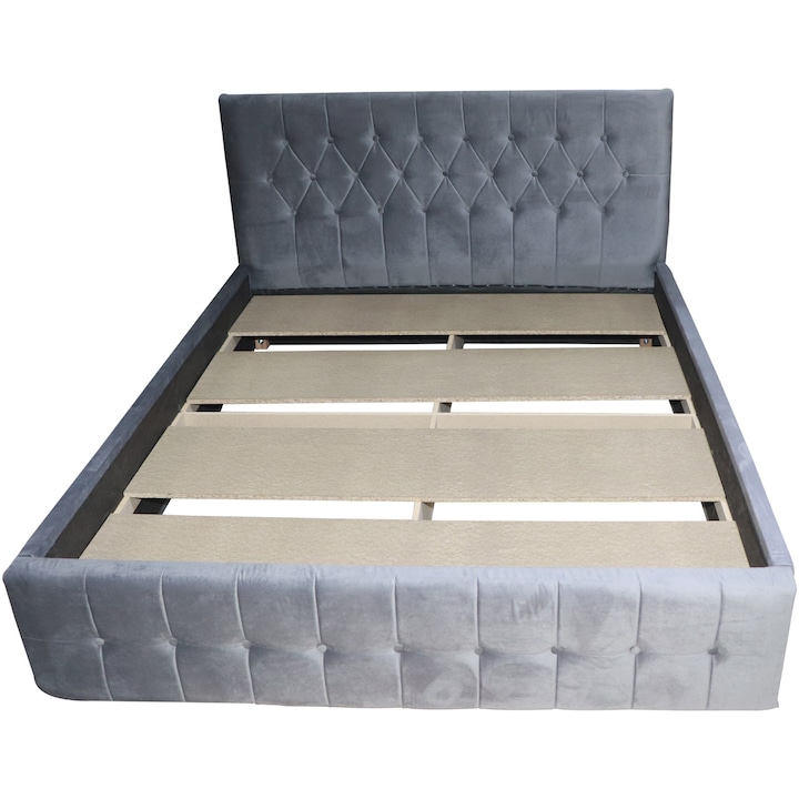 Pat tapitat Nefmob Petra, dimensiuni 213x168x101 cm , saltea recomandata 160×200, culoare gri