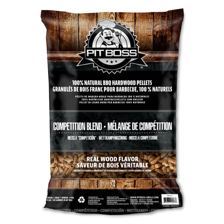 Peletii Pit Boss Competition sunt un amestec complex, dar totusi selectat; creaza o aroma versatila si pot fi folositi pentru orice aliment deoarece nu contine arome artificiale, parfumuri, adezivi sau substante chimice. PeletiiPit Boss sunt 100% naturali, realizati din lemn de esenta tare provenit din toata America de Nord care creeaza un produs finit superior. Aplicarea presiunii ridicate pe rumegus in timpul productiei forteaza seva naturala din lemn sa lege peletele cu o aroma unica pentru fiecare amestec.