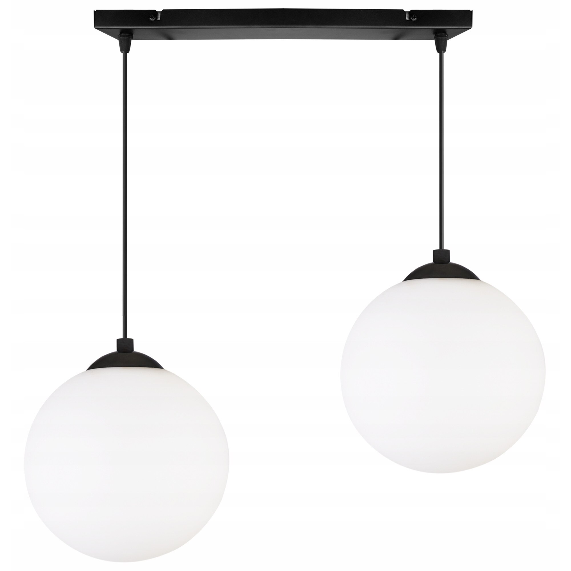 Plafoniera suspendata, Light Home, Florence, reglabile, Lungime 90 cm, Latime 18 cm, Abajur 18 cm, E27, 2 punct de lumina, sticla, Alb/Negru
