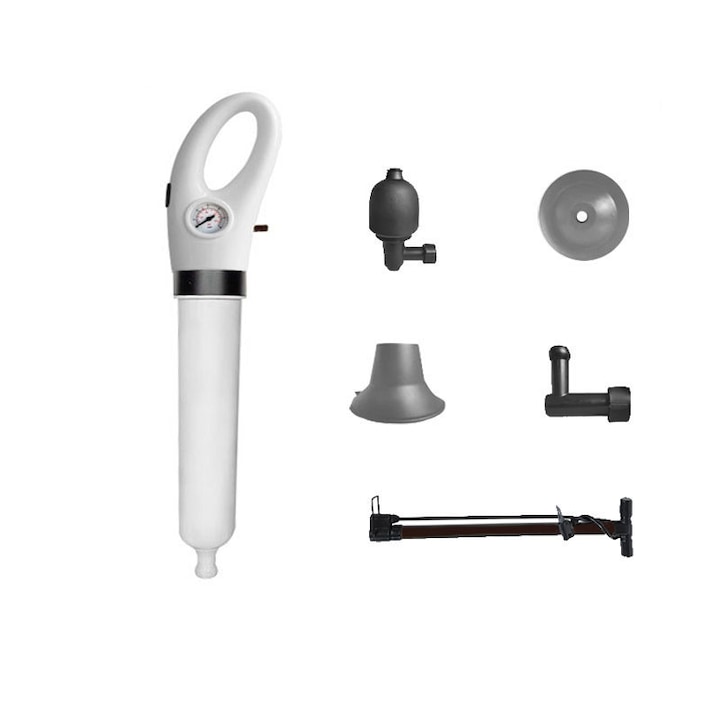 - Manometrul de presiune a aerului permite monitorizarea si ajustarea usoara a nivelurilor de presiune pentru desfundare in functie de diferite locatii.