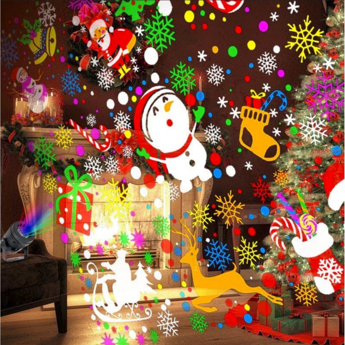 Proiector laser LED pentru lumina de noapte, Proiector de fulgi de zapada, lampa de proiectie, rotire 360 de grade pentru decorarea casei la Craciun, petreceri, Proiectie Om De Zapada, Mos Craciun, Sanie, Fulg, Brad, Ren, Cadouri, Negru, SONORH®