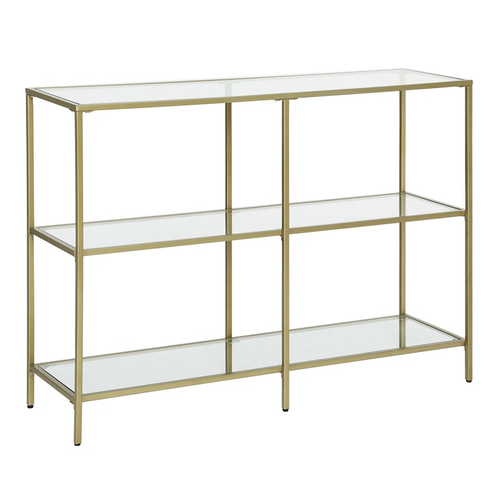 Raft pe 3 nivele VASAGLE, 100x30x73cm, Metal/Sticla, Auriu