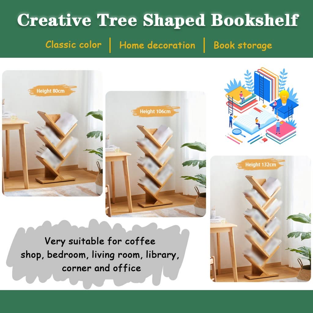 【Raft cu podea in forma de copac】: Oferind o casa unica pentru colectia ta de carti iubita, acest raft de carti are un design special asemanator unui copac care iti permite sa-ti arati cartile cu stil oriunde in casa ta. Design simplu, se adapteaza cu usurinta la diverse stiluri de casa, face-ti casa unica, perfecta pentru cafenea, dormitor, sufragerie, biblioteca, colt si birou