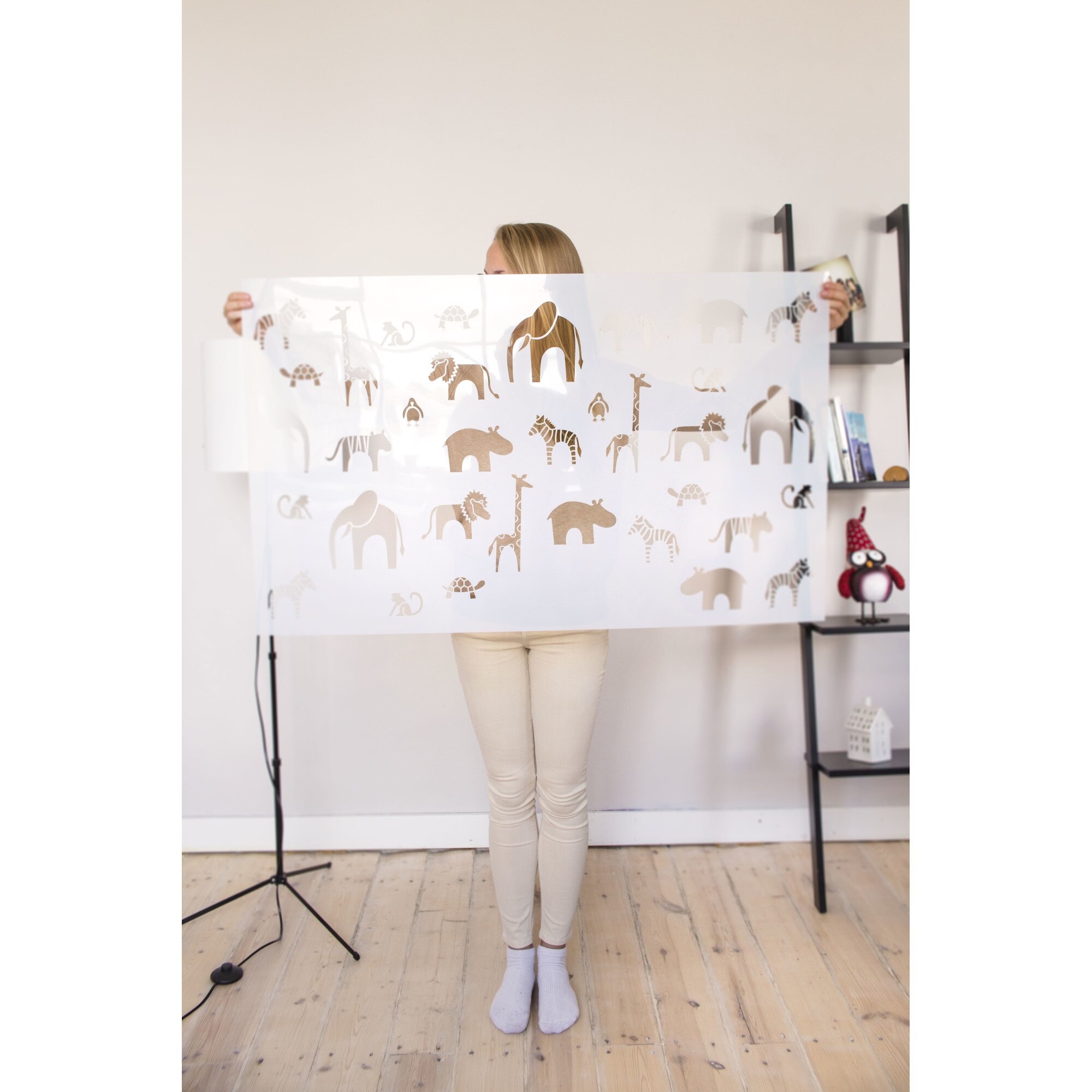 Sablonarea este mult mai creativa decat tapetul si in plus, vopseaua o poti repara oricand! Fiecare sablon vine cu instructiuni la pachet, dar si cu un link catre tutorialele noastre video. Pentru incepatori recomandam folosirea unui spray adeziv temporar, dar nu intotdeauna este necesar. Acesta se aplica pe spatele sablonului si va fi mult mai usor de fixat pe perete. Sablonul se poate fixa pe perete foarte usor si cu scotch de hartie. Pentru un rezultat cat mai bun, recomandam folosirea unui rulou cu burete fin, dens similar celor pentru lacuire. La aplicarea pe sablon, ruloul ar trebui sa nu fie foarte incarcat cu vopsea (rulati pe un ziar cu ruloul de cateva ori vopseaua in exces) si sa nu apasati prea tare pe acesta, ca marginile sa iasa clare si pentru ca vopseaua sa un se infiltreze sub sablon. Nu va faceti griji, toate aceste sfaturi le gasiti pe larg si in instructiunile noastre!
