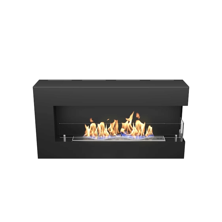 Semineul bioetanol BLUES este un dispozitiv de colt elegant, creat pentru a crea o atmosfera uimitoare in orice incapere. Cu utilizarea geamurilor laterale, viziunea asupra focului in semineul bio este extinsa, oferind o experienta panoramica. Aspectul elegant si designul subtire fac ca acest semineu bio sa fie ideal pentru a fi suspendat direct pe perete. Designul panoramic si arzatorul in forma de unda ofera o viziune uimitoare a focului. Biosemineul BLUES este echipat cu un biocontainer subtire cu capacitate crescuta, care prelungeste timpul de ardere pana la 4 ore.