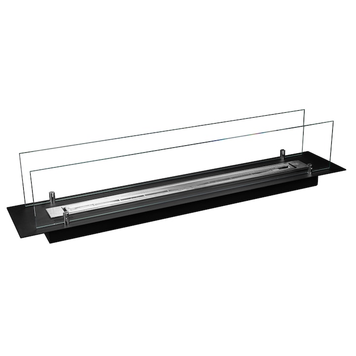 Grosimea sticlei 4mm. Dimensiunile bazei cu arzator: 990x194mm. Dimensiunea bazei inferioare de amplasat in mobilier: 841x115mm, inaltime 56mm.