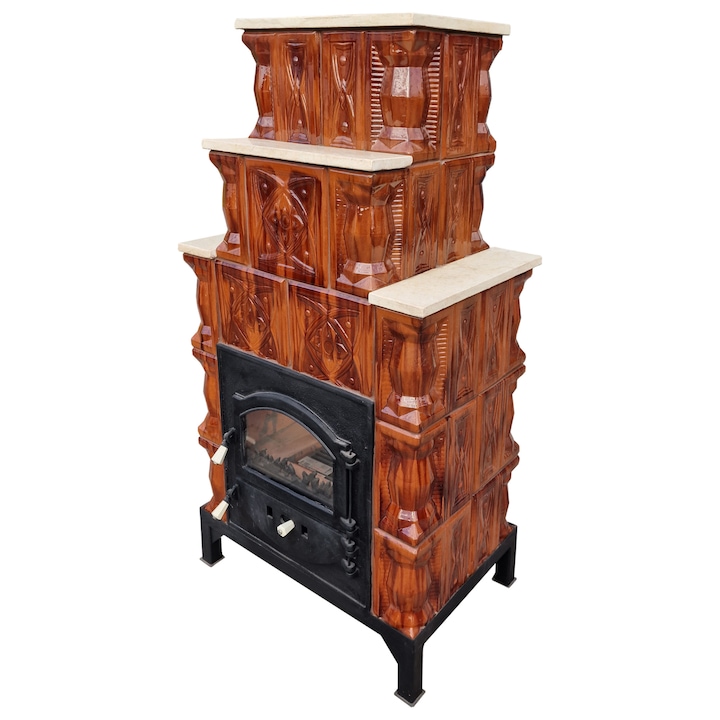 Semineu teracota, Gospodarul, 5 randuri, usa sticla mare, diamant savana, 140 cm x 67 cm x 46 cm