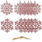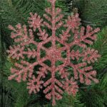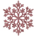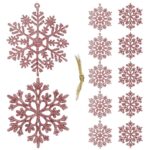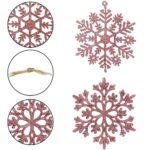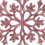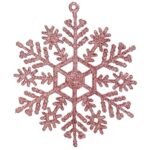 Set 12 decoratiuni pentru brad tip fulg de zapada, 10 cm, cu snur, roz