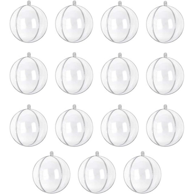 Set 15 globulete din plastic, demontabile, pentru bricolaj, decor pom de Craciun, transparente, 60 mm