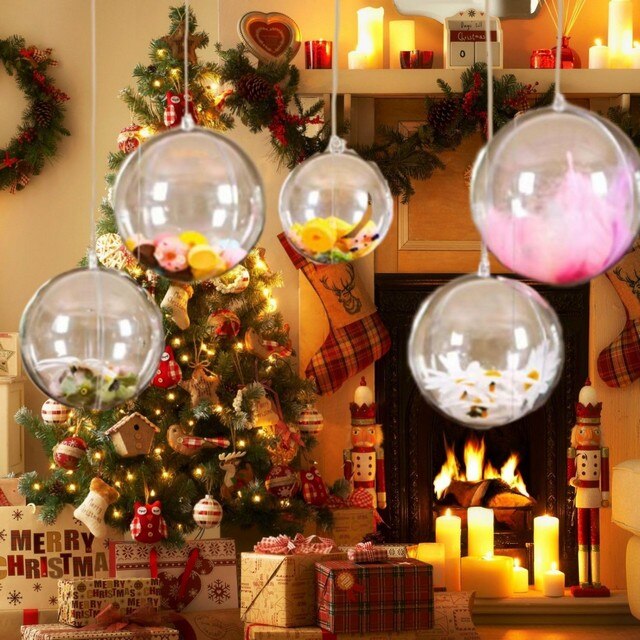 Globulete decorative sunt realizate din plastic durabil. Potrivit pentru decoratiuni DIY si toate tipurile de decoratiuni de sarbatori. Fiecare globulet este impartit in doua parti si poate fi umplut cu sclipici sau alte materiale decorative, cu o panglica. Il poti agata oriunde. Copaci, usi, camere, intreaga lume Multifunctional: Aceste bile decorative de Craciun pot tine diverse obiecte, cum ar fi flori, pietricele, bile de ratan, fotografii etc. De asemenea, puteti pune in dulciuri si alte gustari mici, facandu-l un accesoriu grozav pentru decoratiunile de Craciun si festiv.