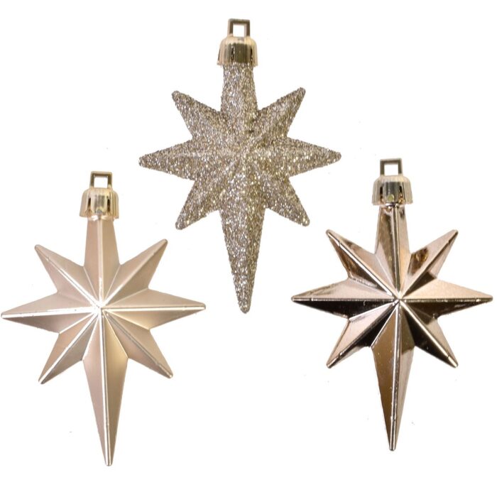Set 16 globuri in forma de stele de Craciun culoare auriu sampanie, DecorCasa, 8 cm