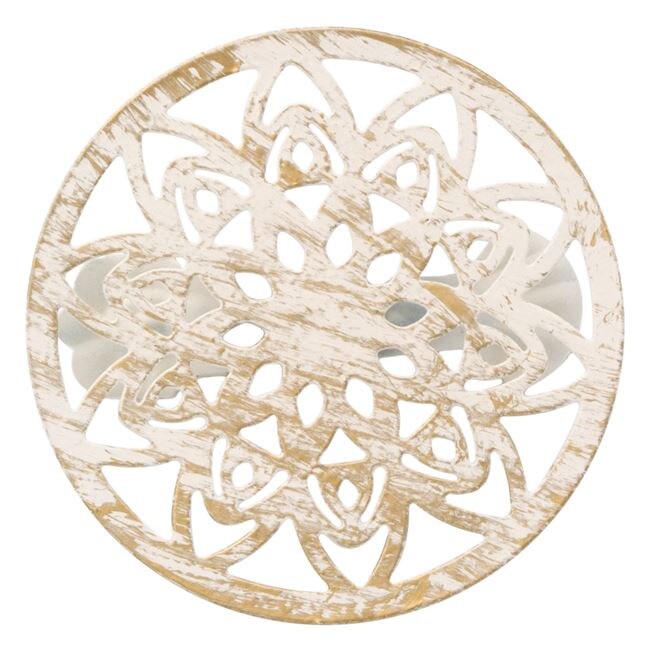 Tije decorative pentru perdele cu design floral metalic perforat in aur alb periat 6,5 cm si inchidere cu cleme metalice.