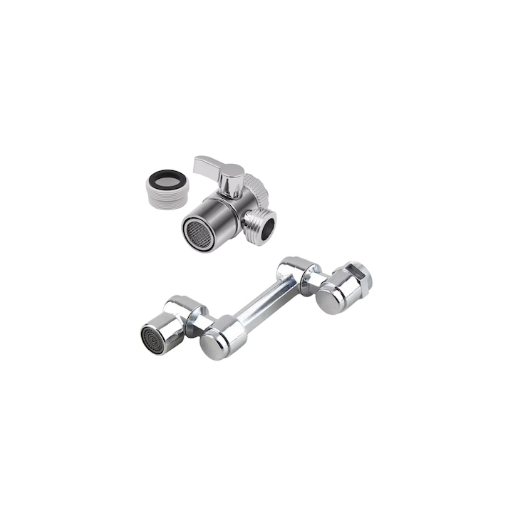 Home Sanitare Sanitare si accesorii Accesorii baterii sanitare Set 2 bucati, adaptor baterie apa, brat rotativ si dus universal, functie economizor, doua moduri dus si bule, cromat, argintiu