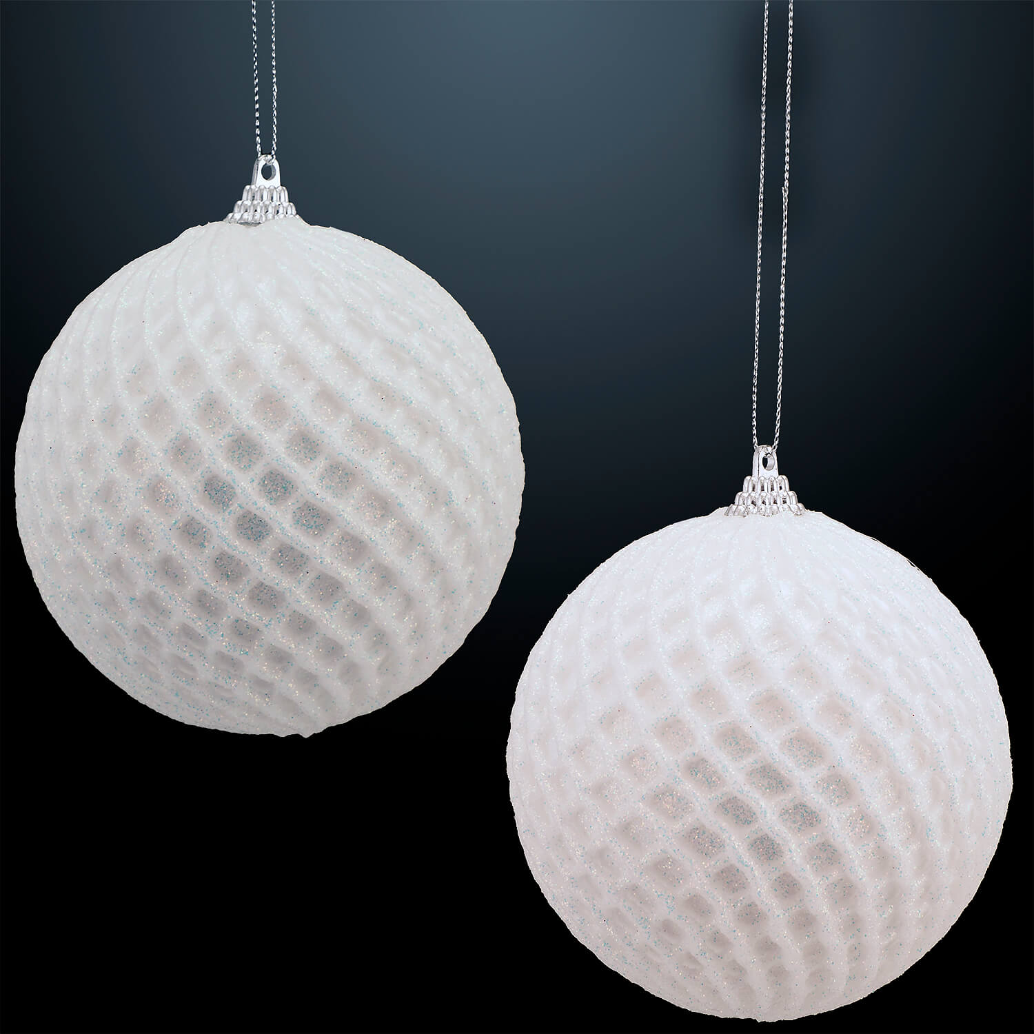 Set 2 globuri Holly, dantelate, 10cm, alb