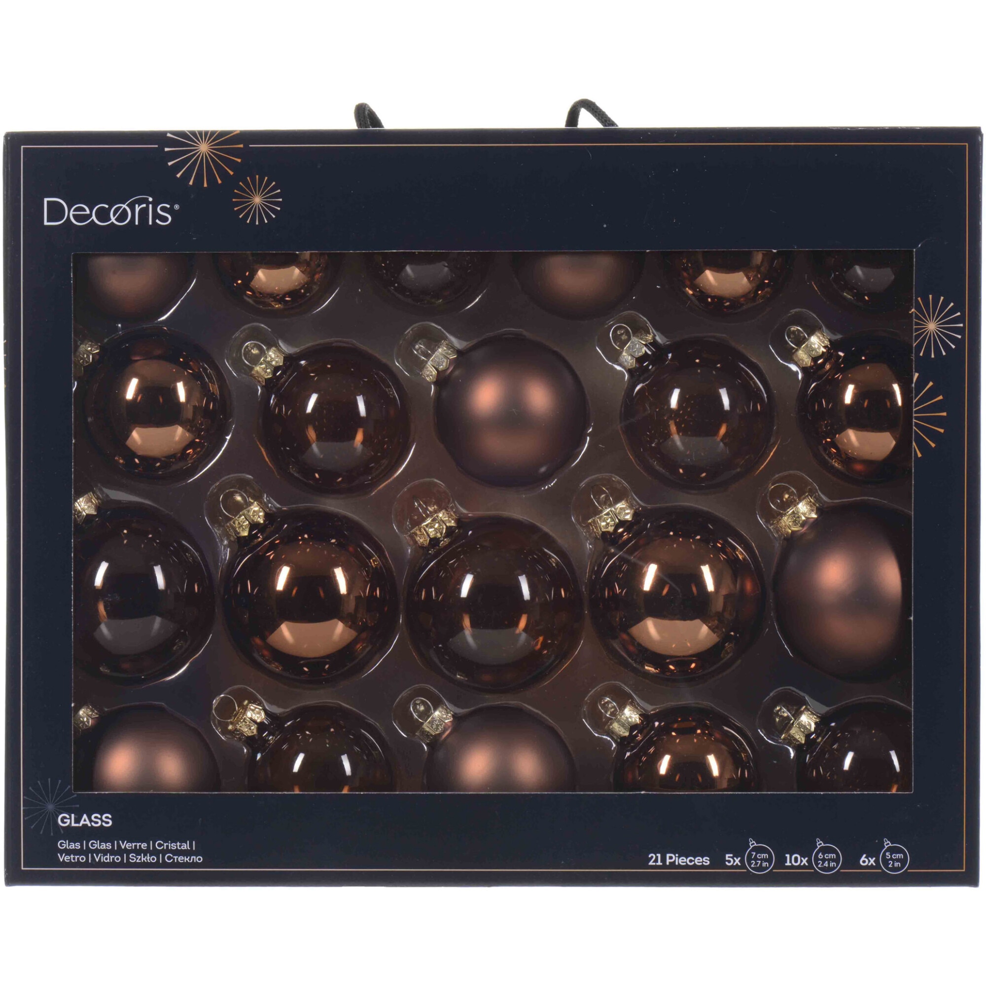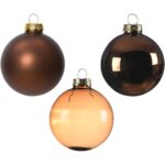 Set 21 globuri asortate Decoris, diametre 5-7 cm, sticla, finisaje diverse, maro