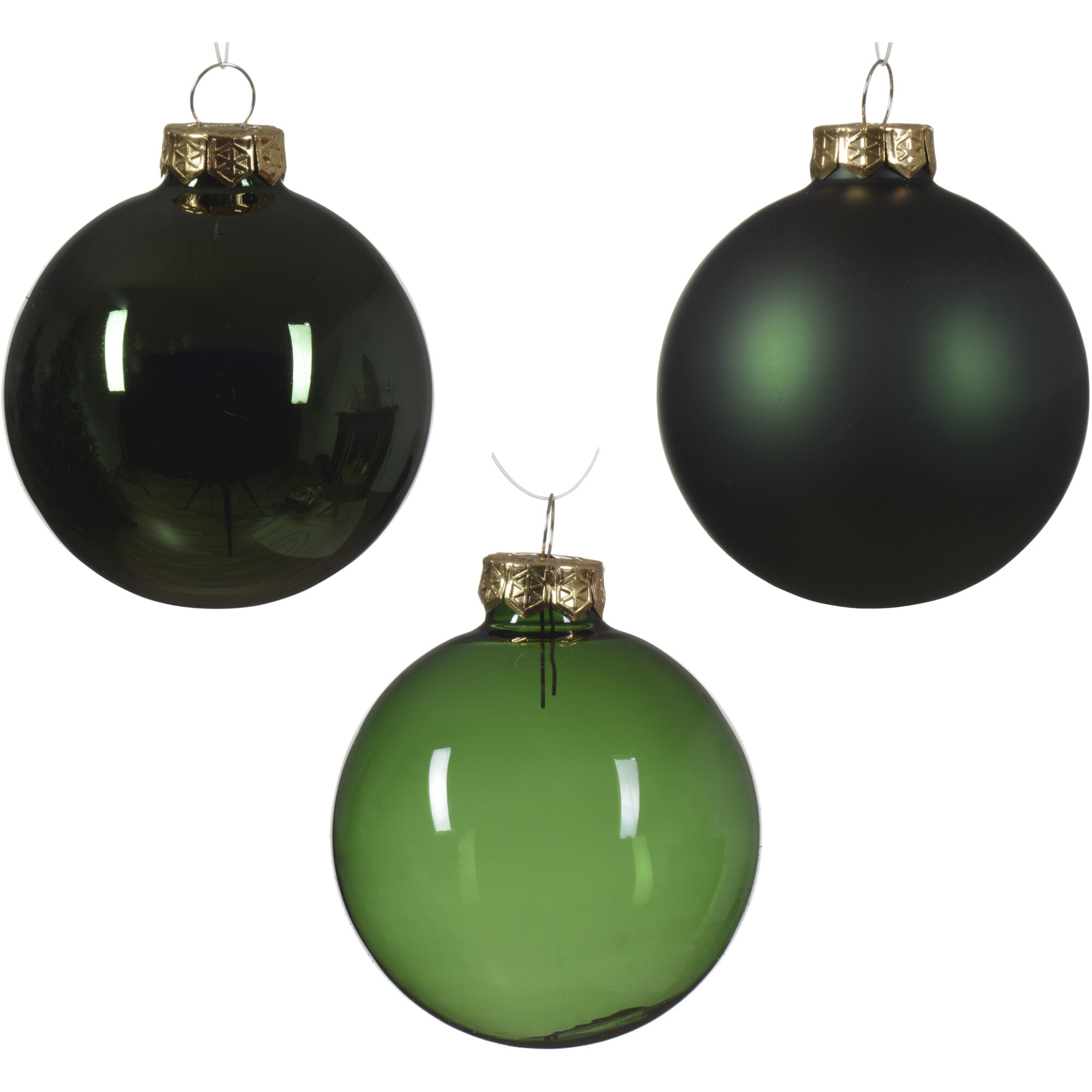 Set 21 globuri asortate Decoris, diametre 5-7 cm, sticla, finisaje diverse, verde inchis