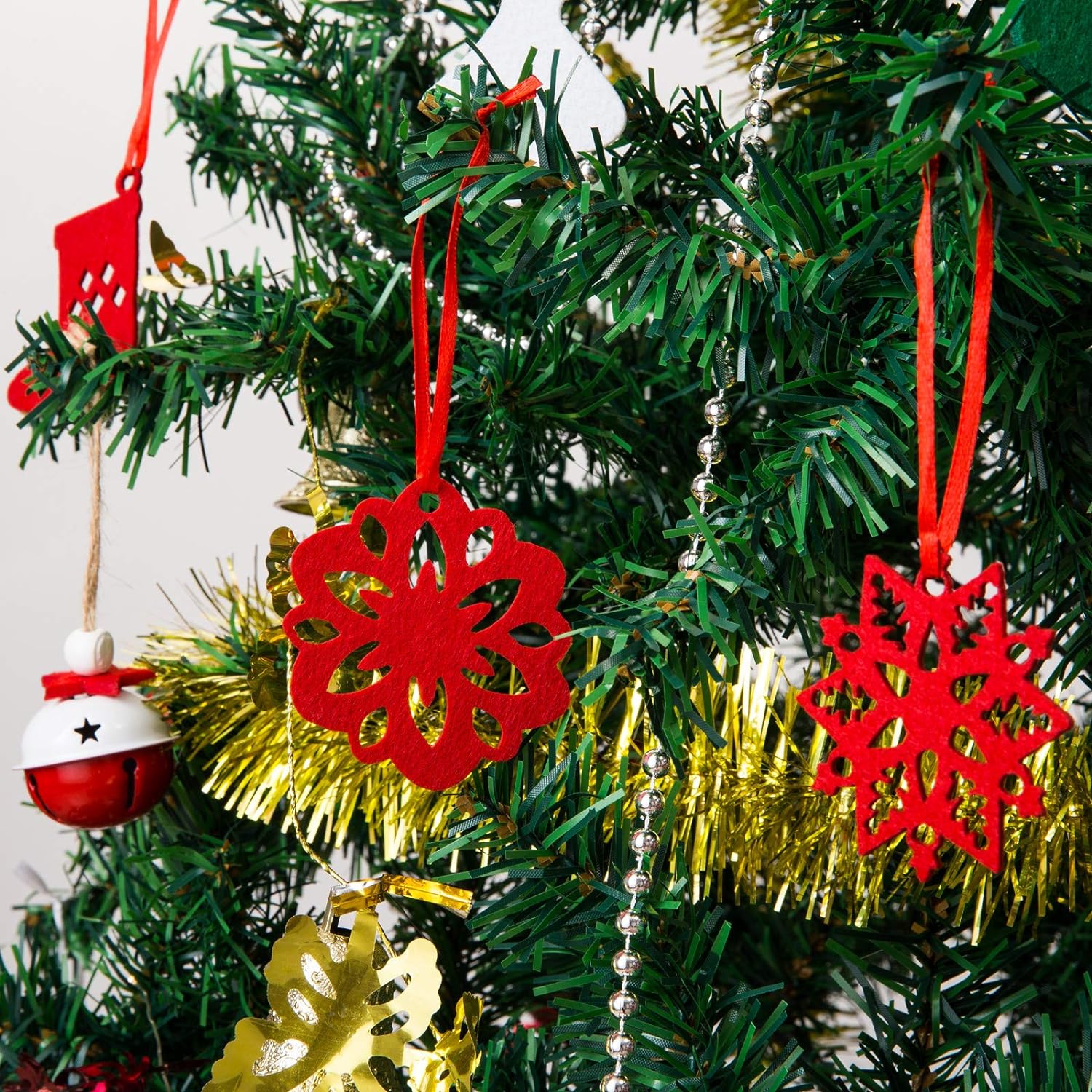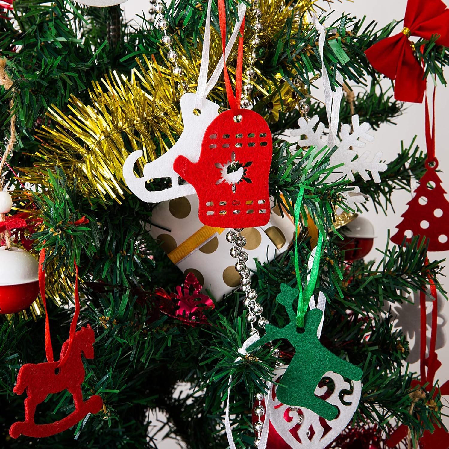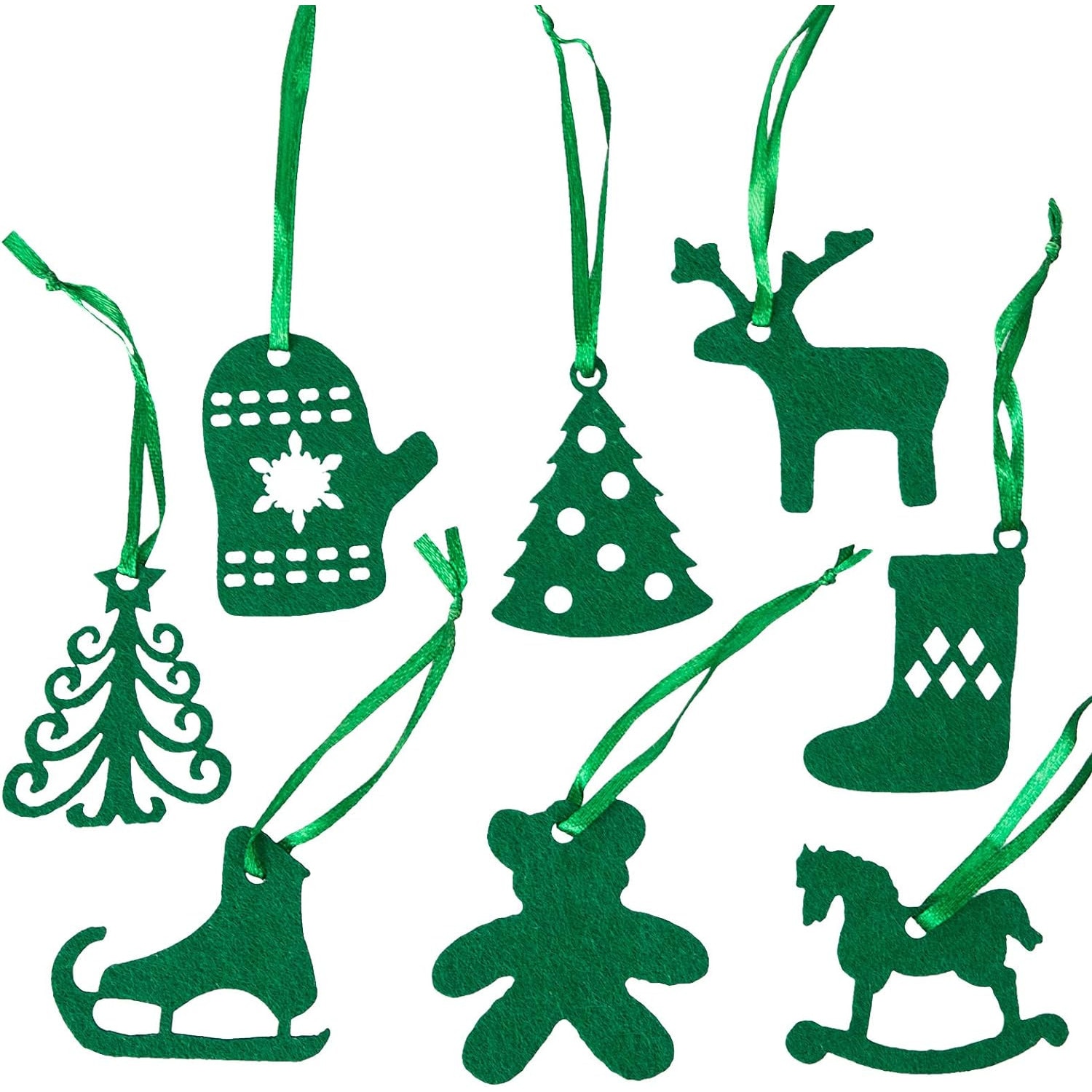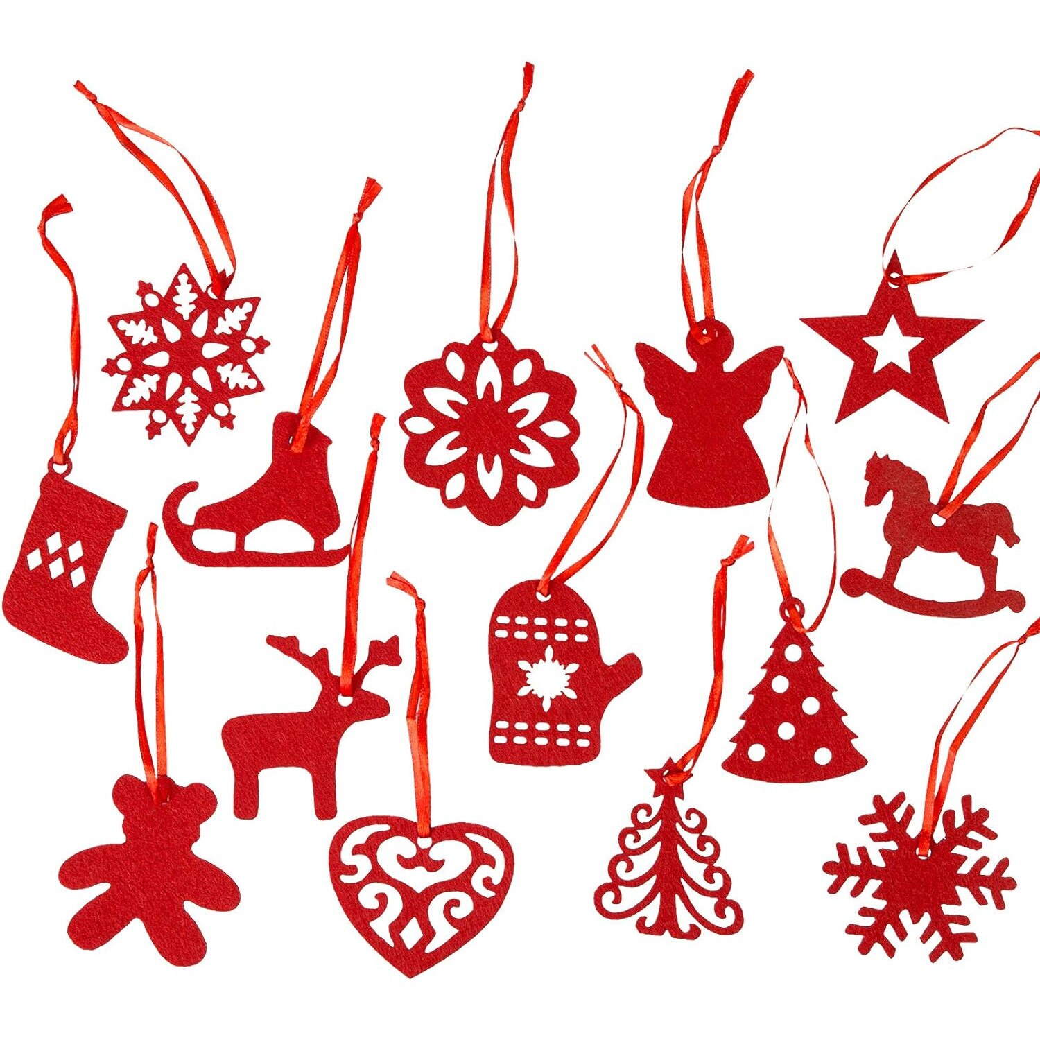 Set 36 de ornamente pentru brad de Craciun, din fetru, inimioare, braduti, reni, ingeras, fulg de nea, ghetuta, Rosu/Alb/Verde