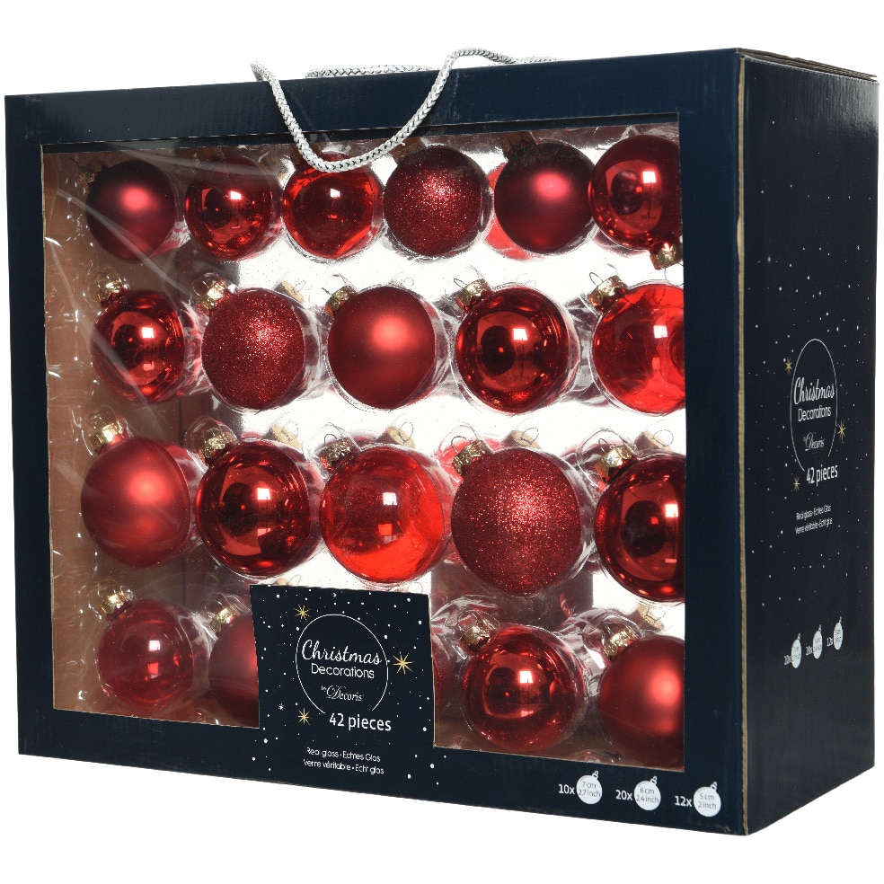 Set 42 globuri Craciun Decoris, sticla, dimensiuni asortate, rosu