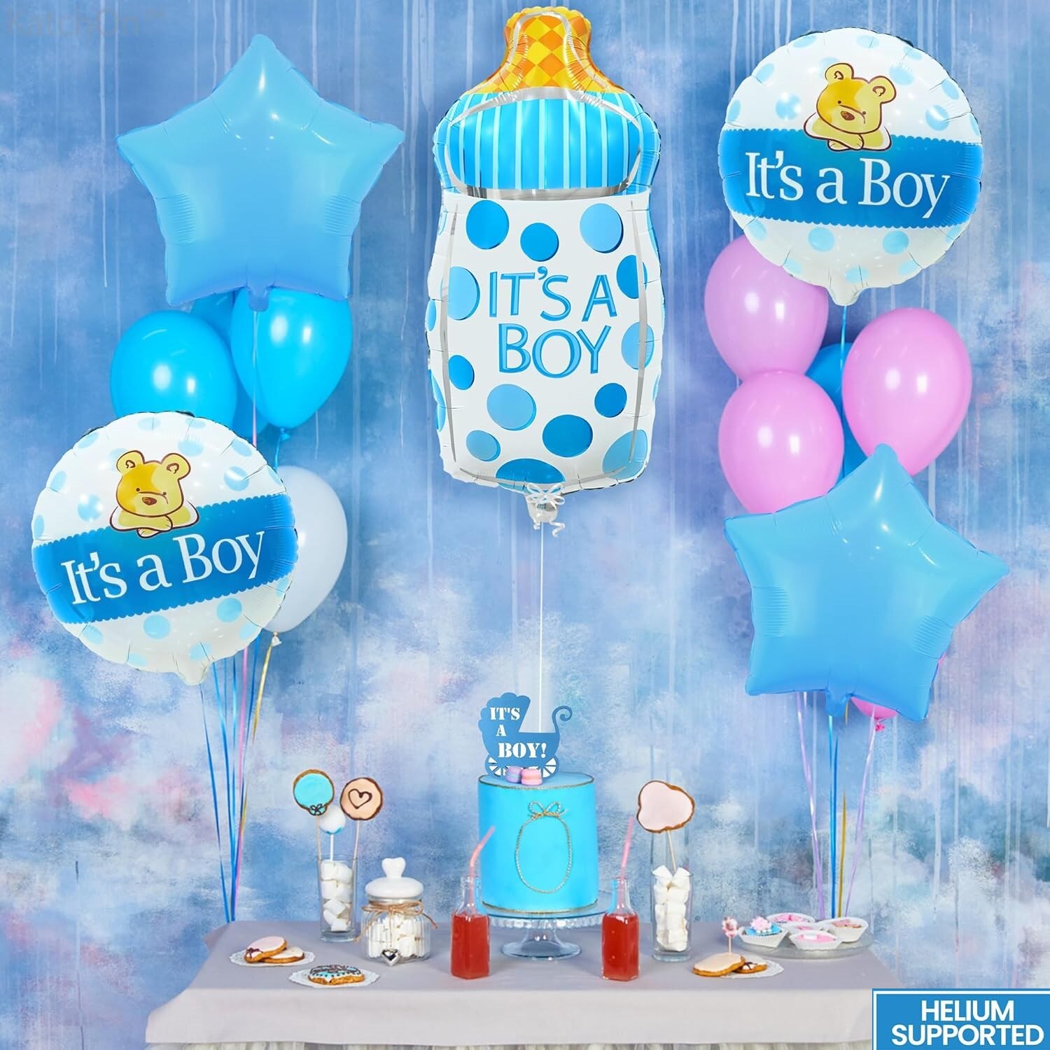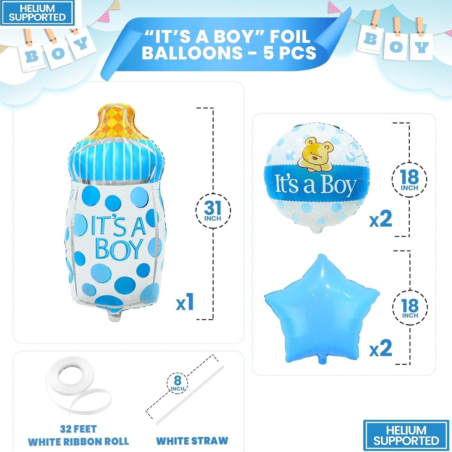 Faceti petrecerea pentru baby shower sa fie una deosebita cu acest set de baloane cu figurina biberon! Pot fi folosite ca fundal foto pentru a face fotografia perfecta la o petrecere si pentru a va salva amintiri pretioase intru-un album. Baloanele pentru baietel vor crea o atmosfera distractiva, de neuitat pentru ziua ta speciala!
