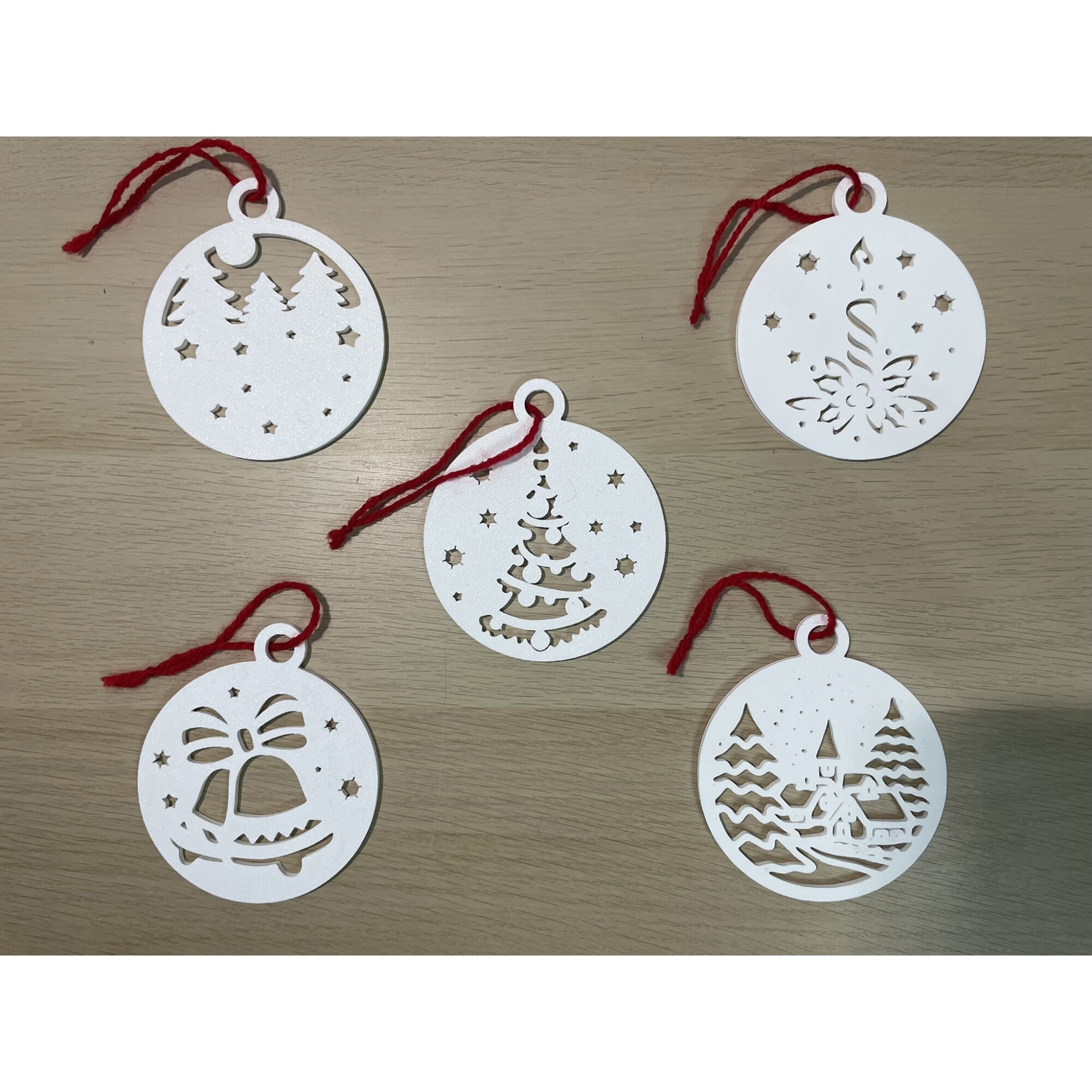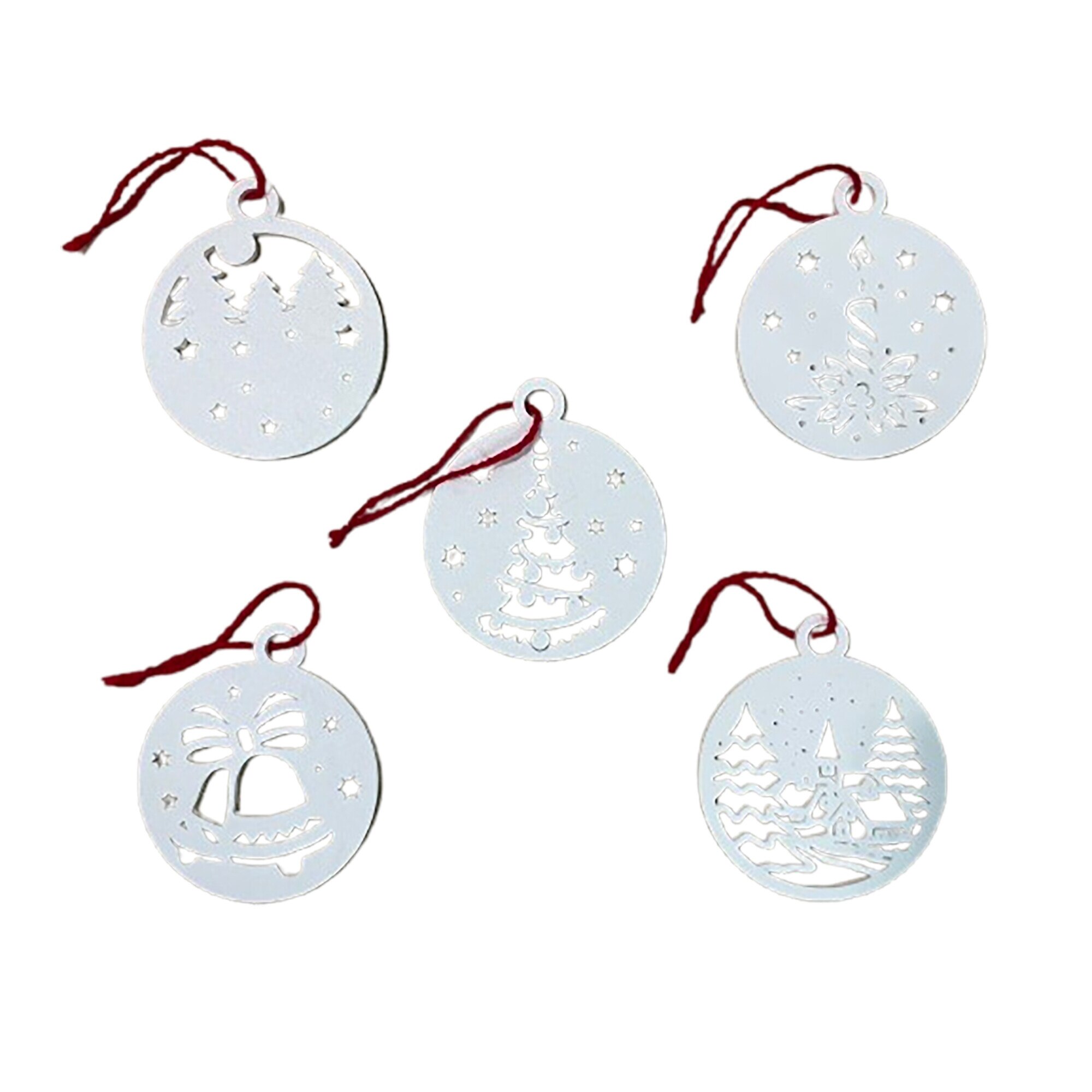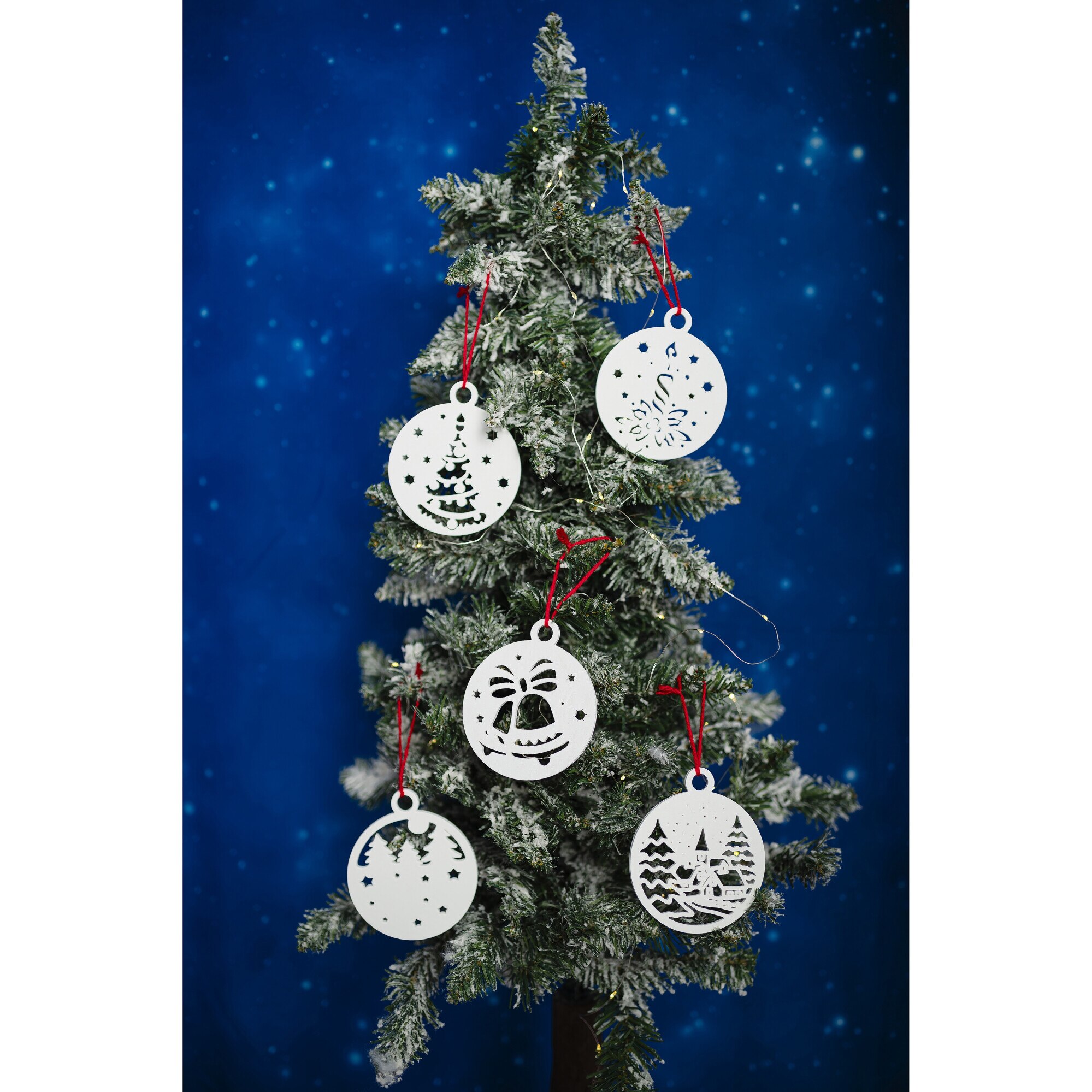 Set 5 ornamente brad Craciun, diametru 9 cm, alb, imprimate 3D, model 2035