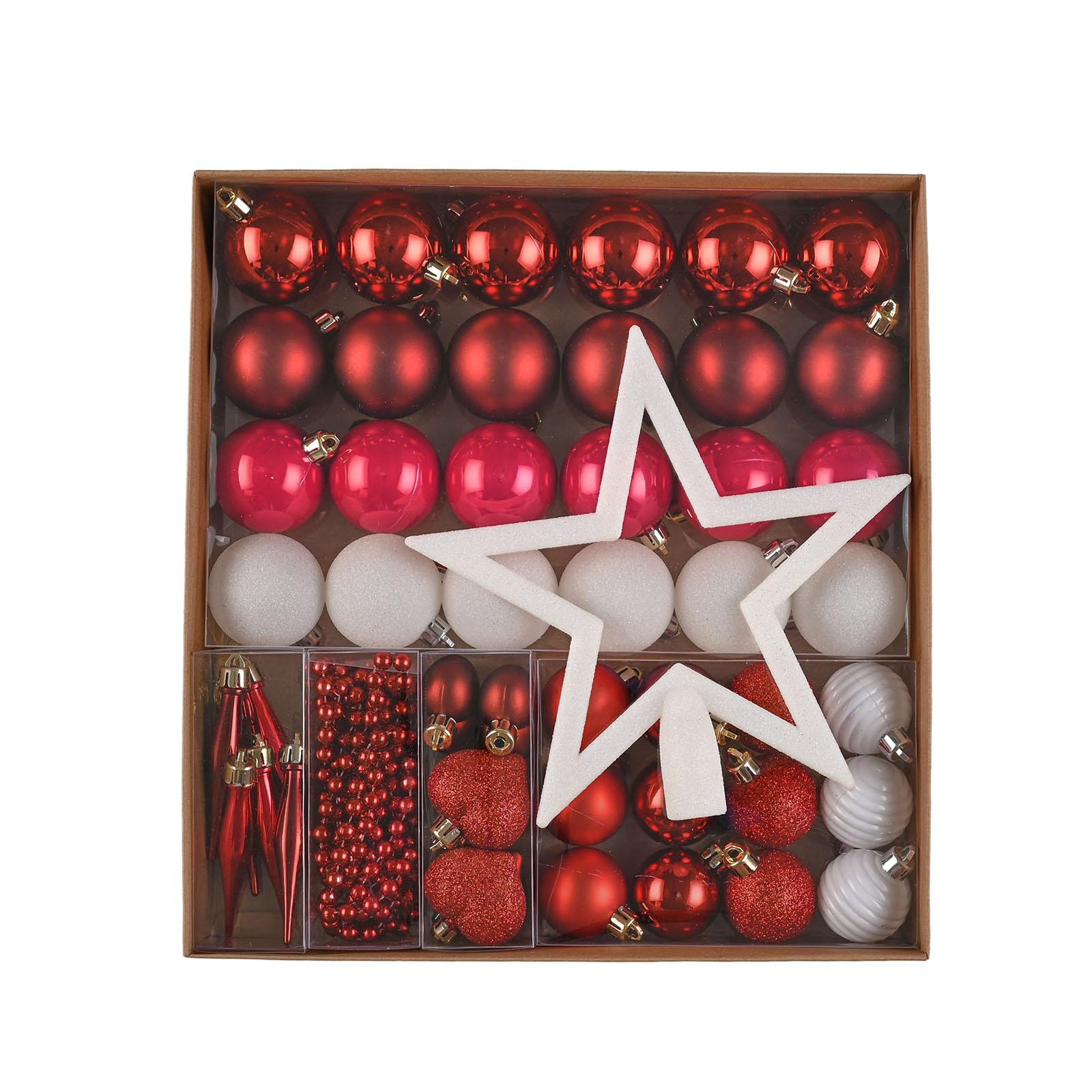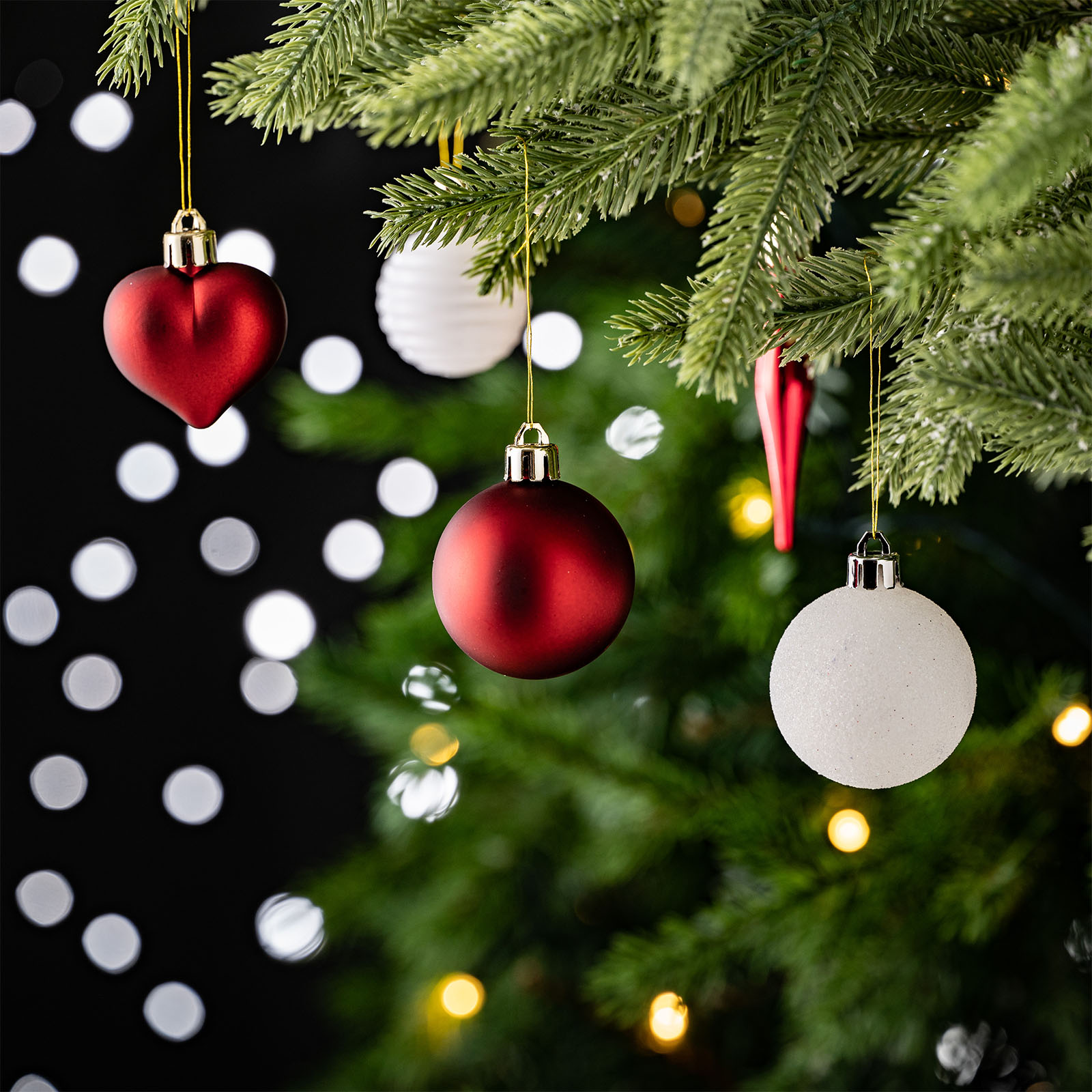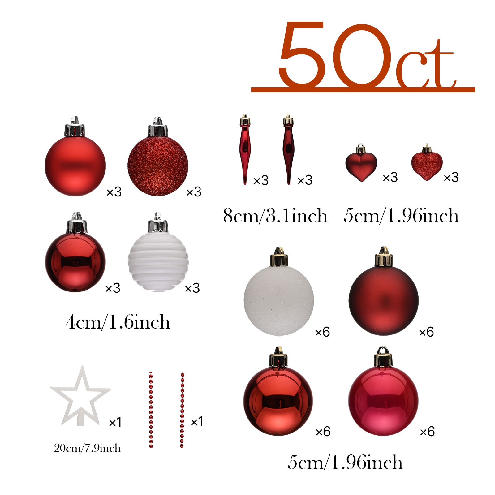 Set 50 de ornamente brad Kring, asortate, Rosu/Alb