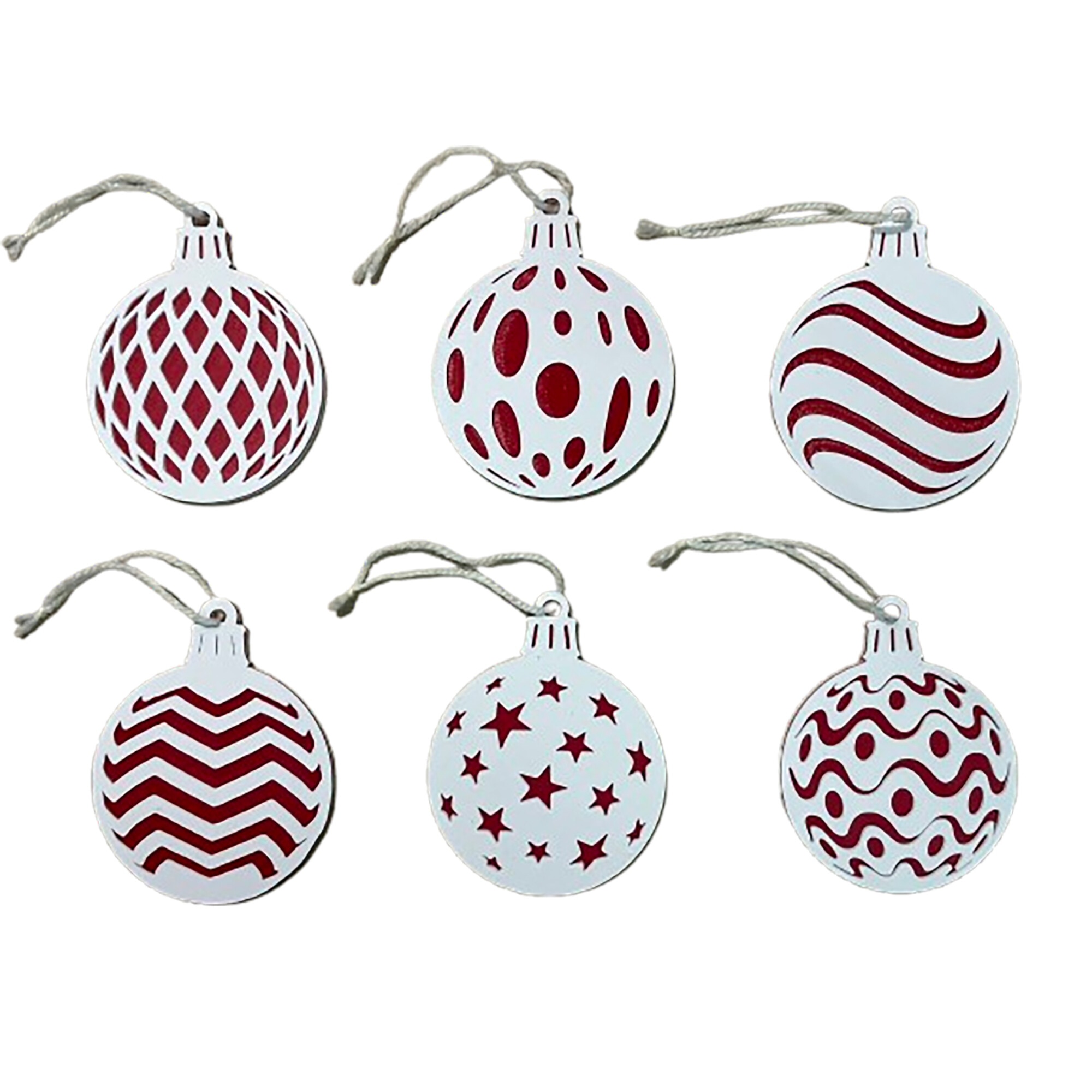 Set 6 ornamente brad Craciun, diametru 9 cm, alb / rosu, imprimate 3D, model 2026