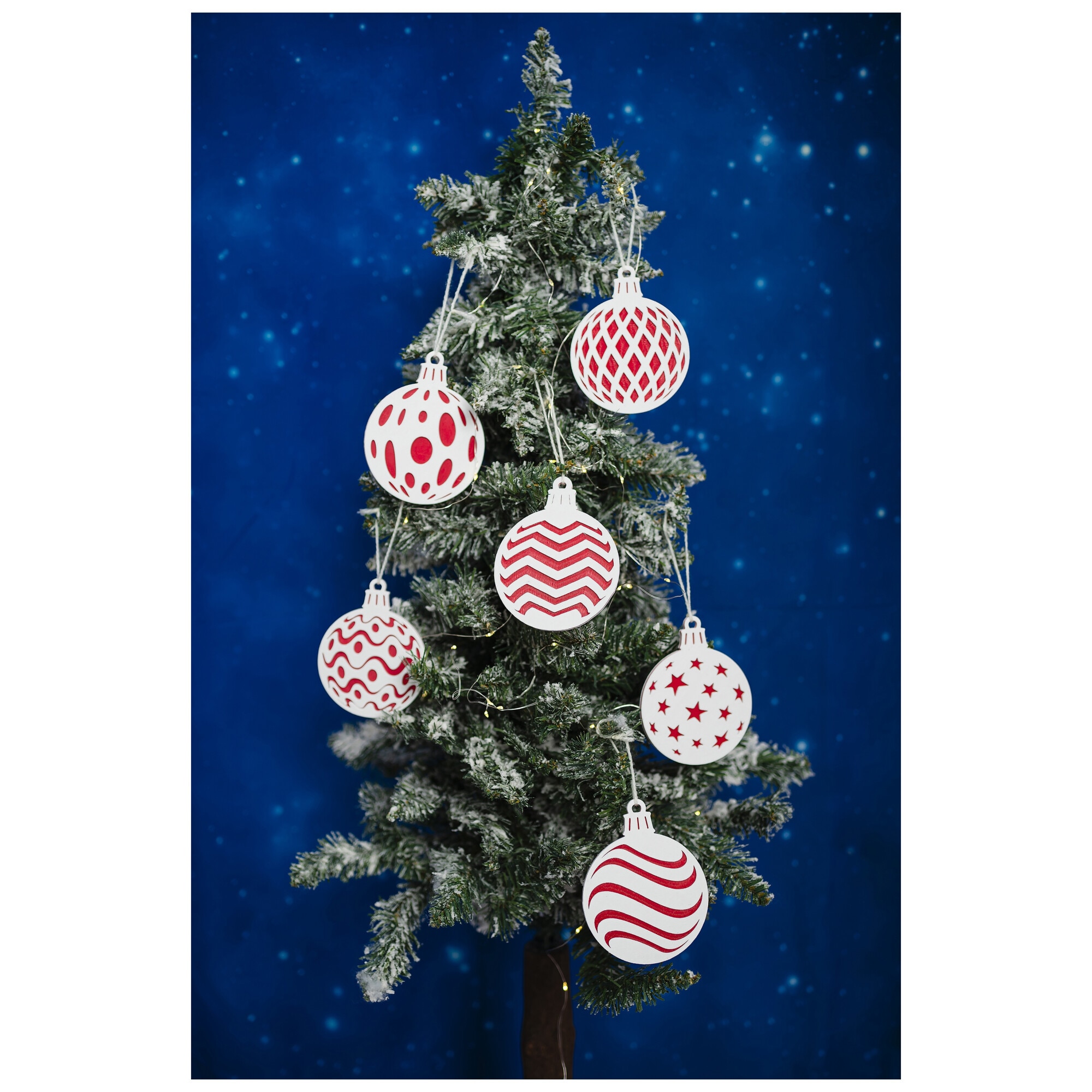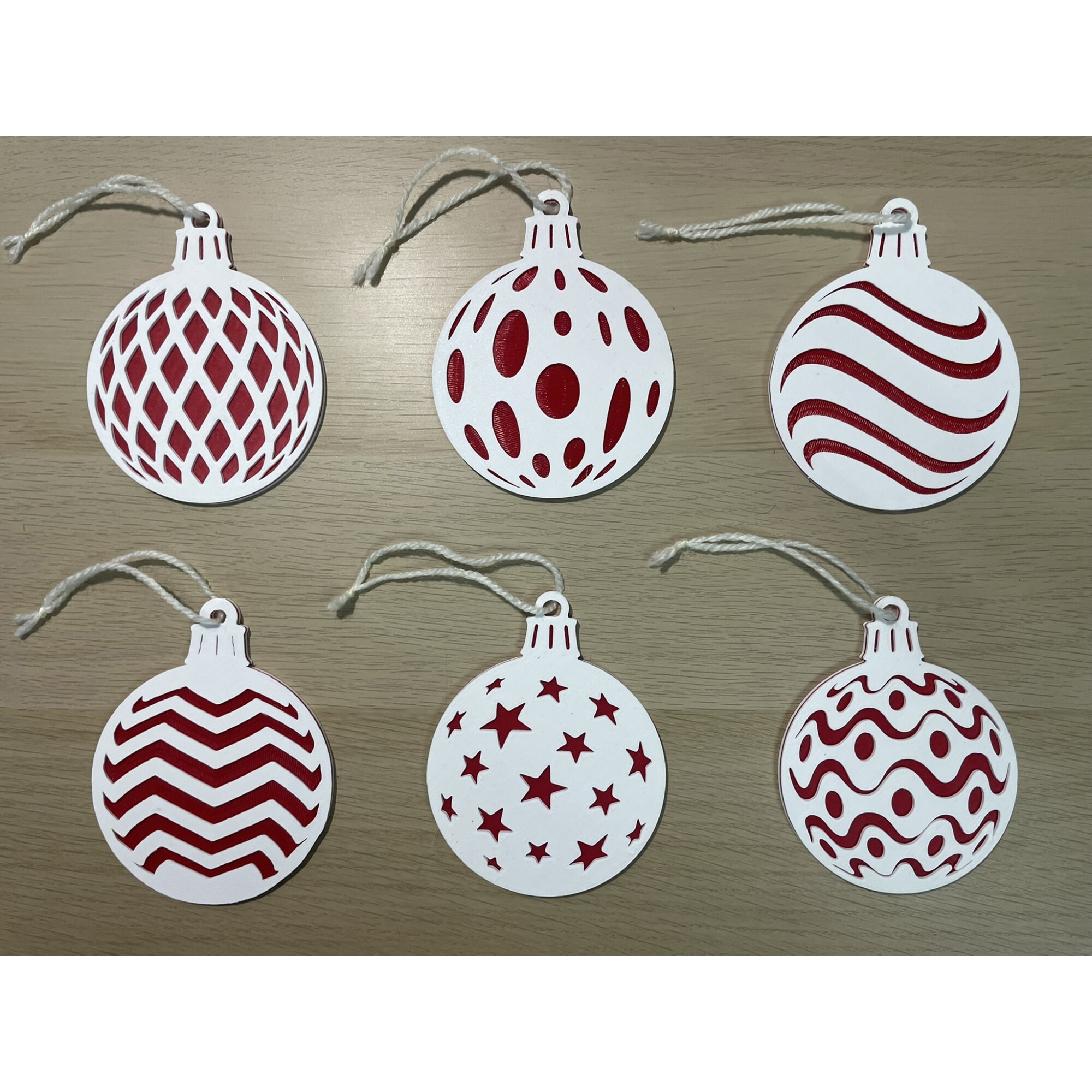 Be the first to review “Set 6 ornamente brad Craciun, diametru 9 cm, alb / rosu, imprimate 3D, model 2026” Anulează răspunsul