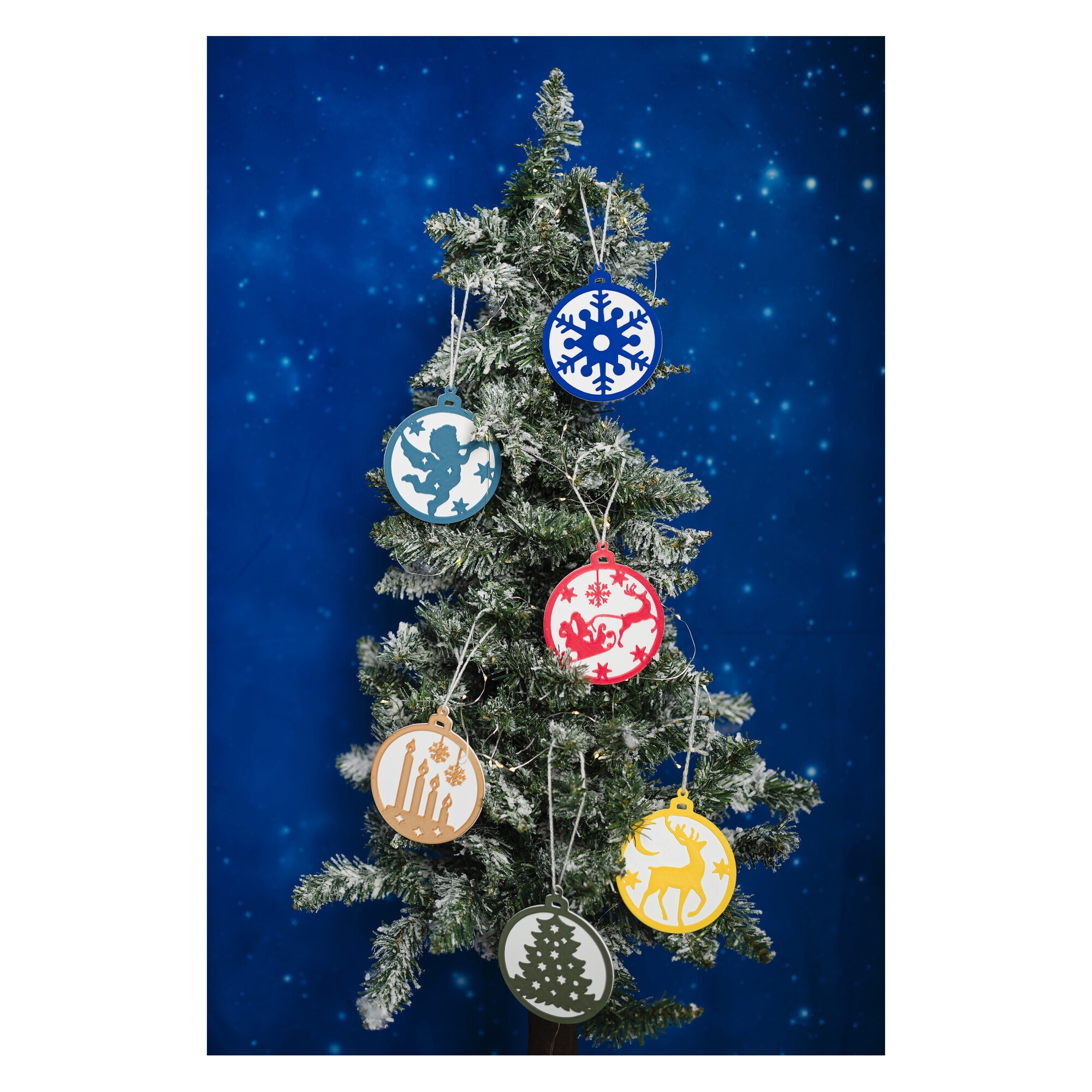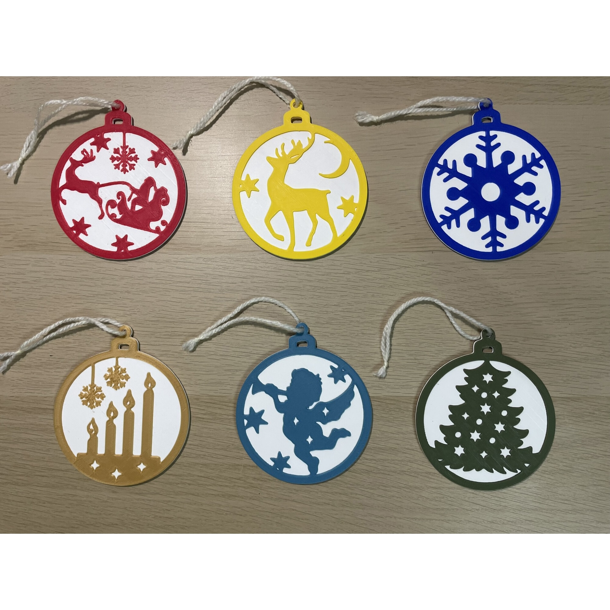 Set 6 ornamente brad Craciun, diametru 9 cm, multicolor, imprimate 3D, model 2029
