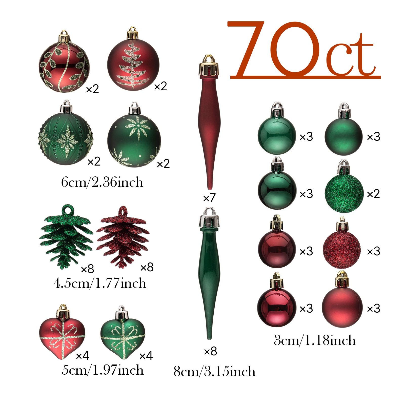 Set 70 de ornamente brad Kring, asortate, Verde/Rosu/Auriu
