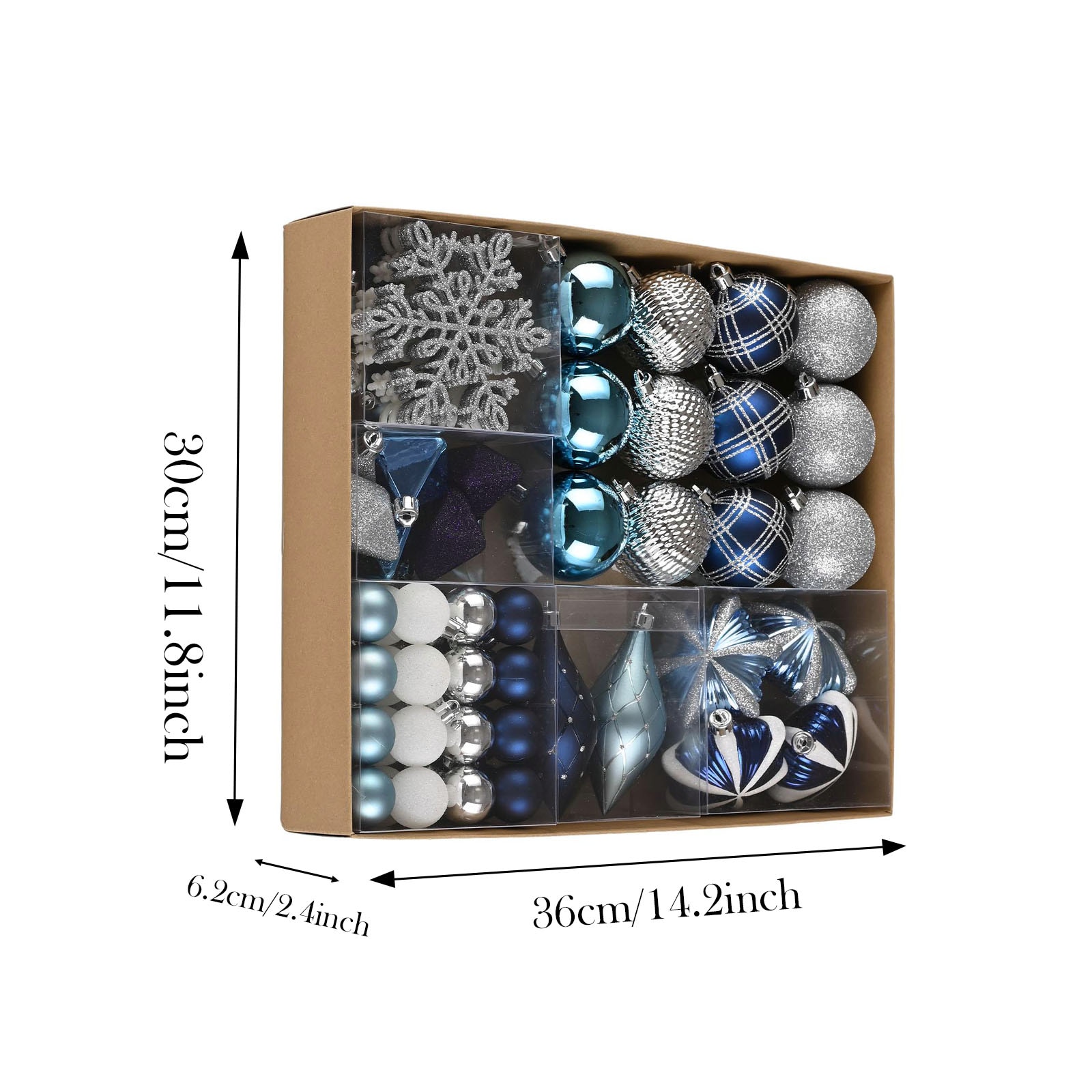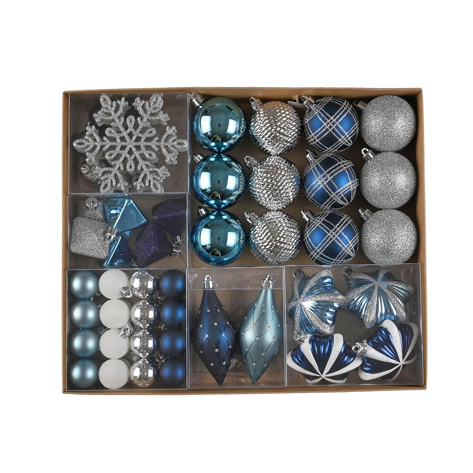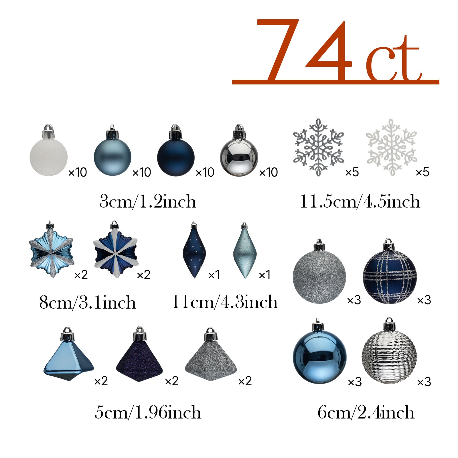 Home Decoratiuni, ornamente si articole Craciun Globuri de Craciun Set 74 de ornamente brad Kring, diverse forme si dimensiuni, Albastru/Argintiu