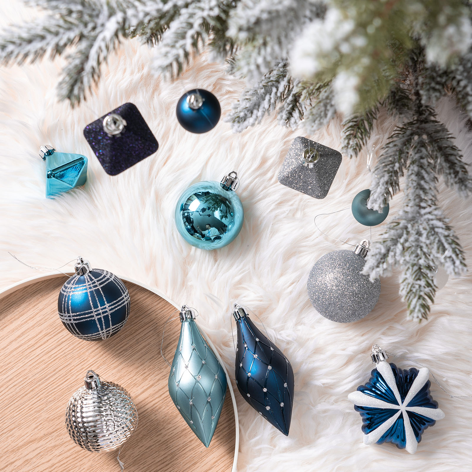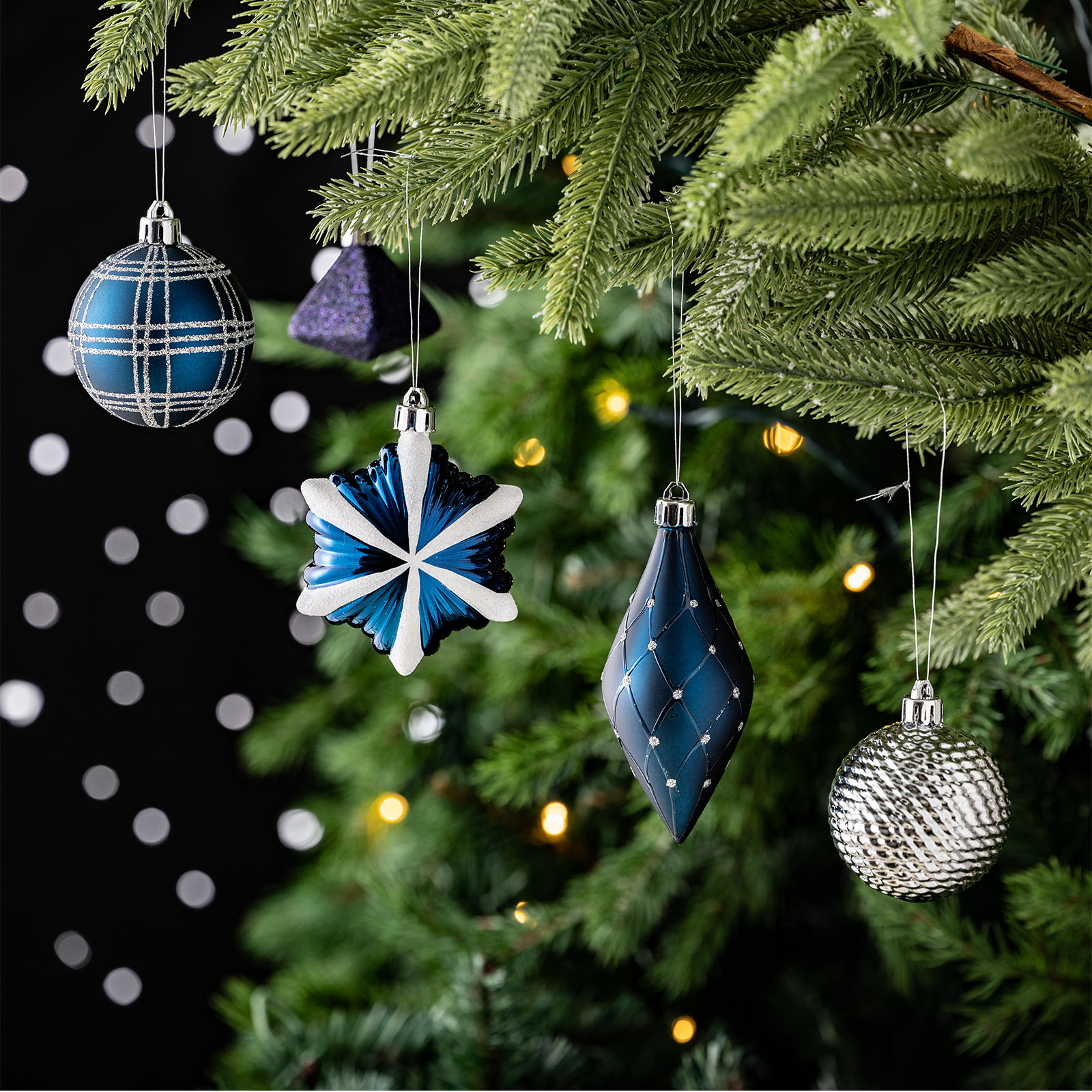 Set 74 de ornamente brad Kring, diverse forme si dimensiuni, Albastru/Argintiu