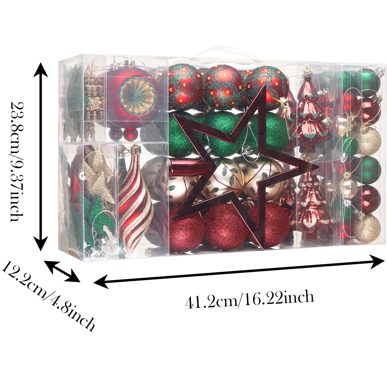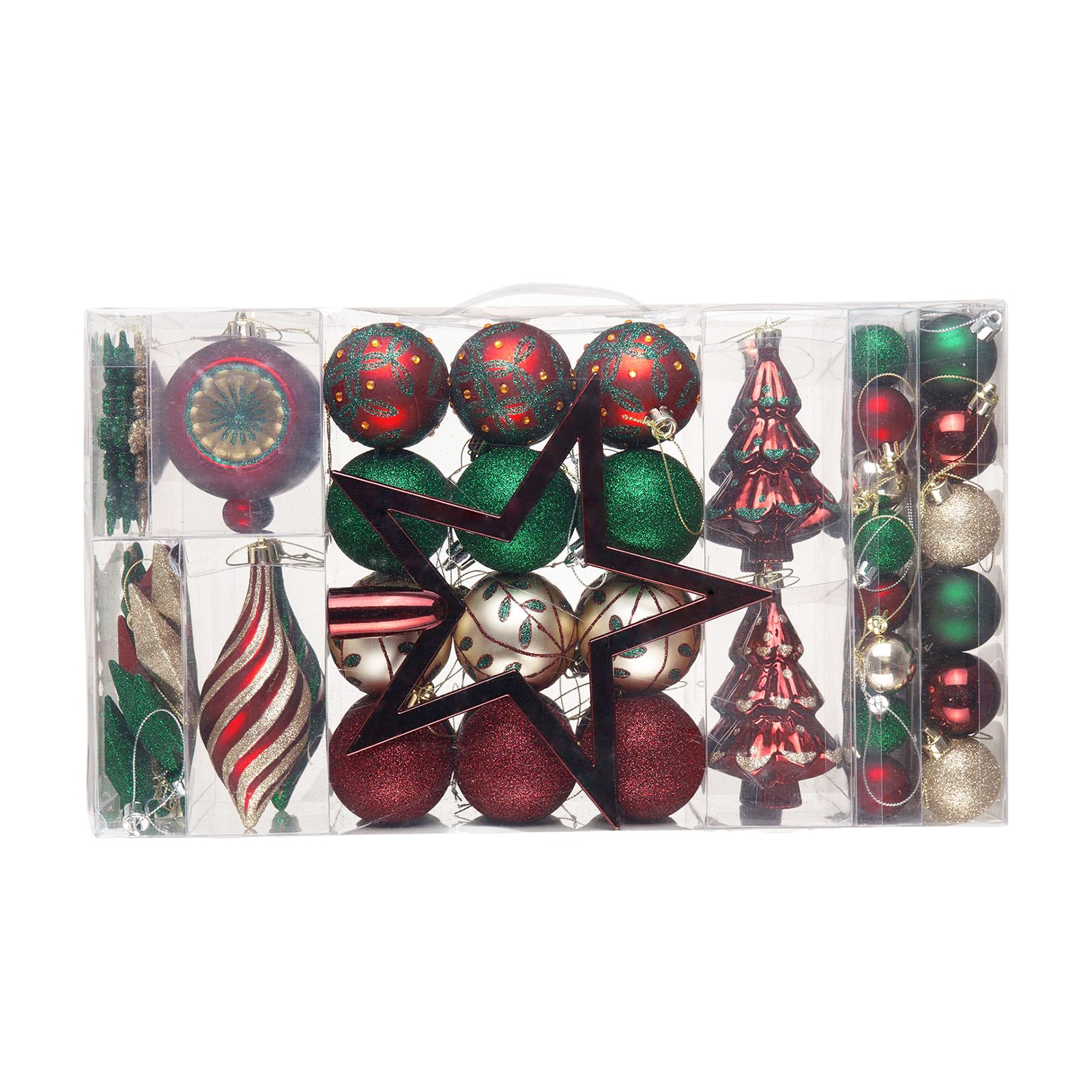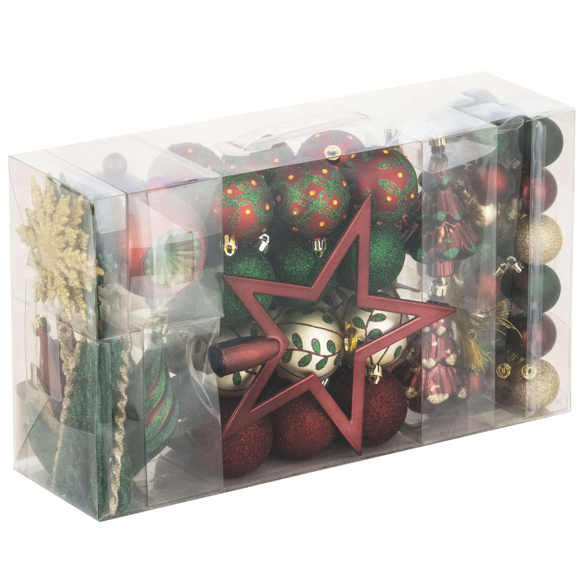 Home Decoratiuni, ornamente si articole Craciun Globuri de Craciun Set 92 de ornamente brad Kring, diverse forme si dimensiuni, Verde/Rosu/Auriu