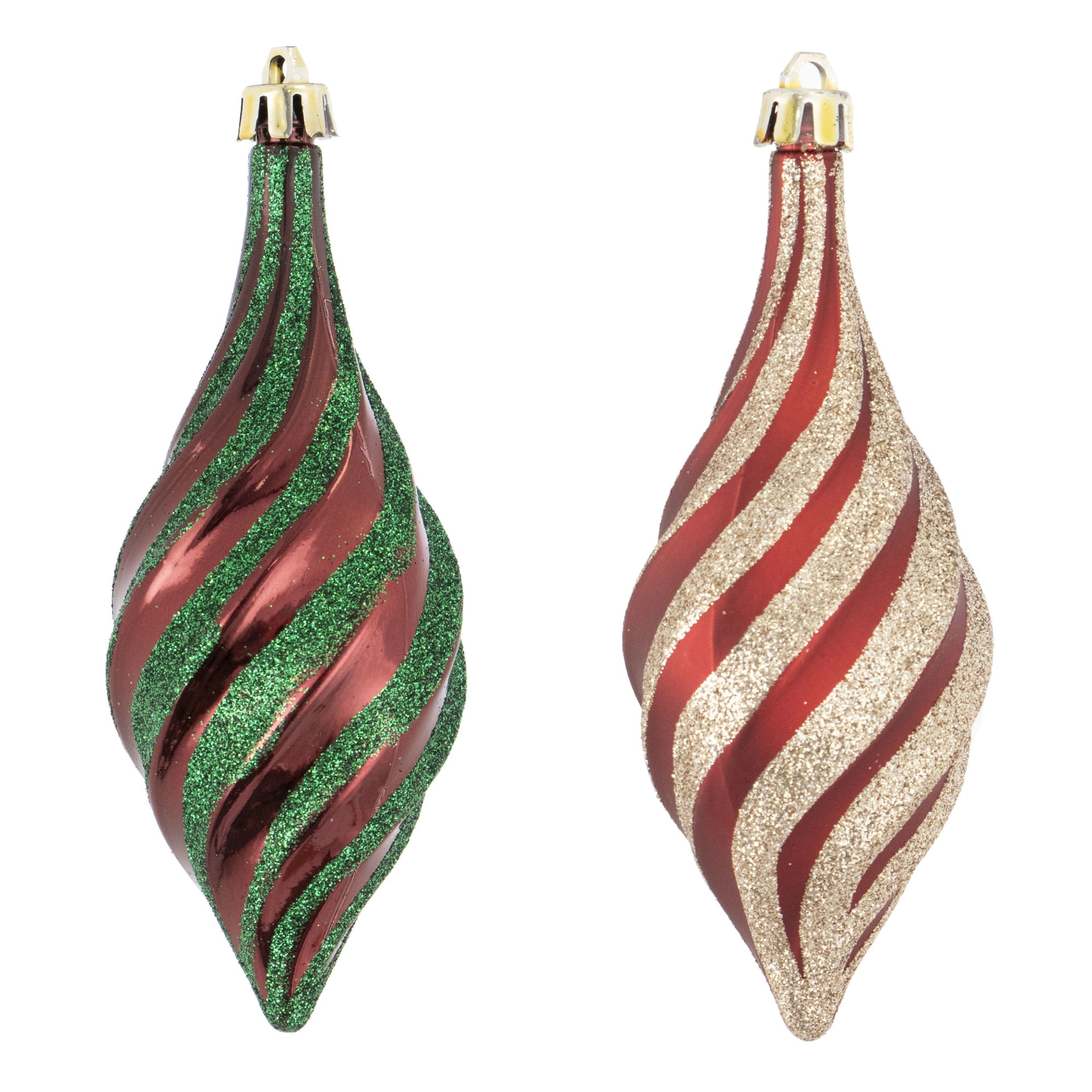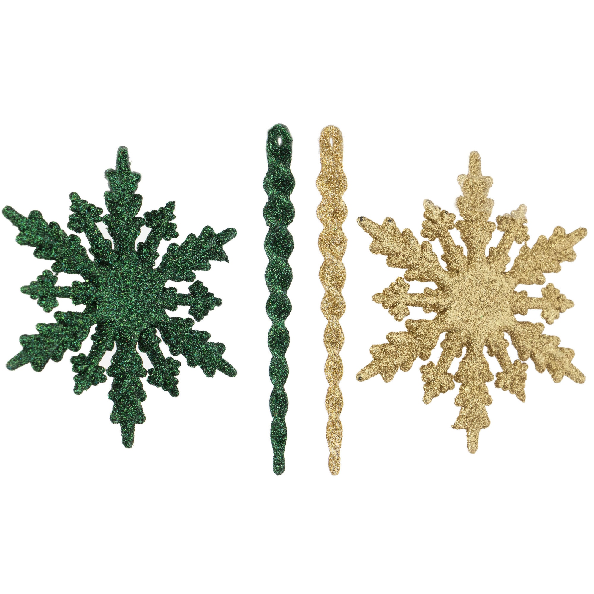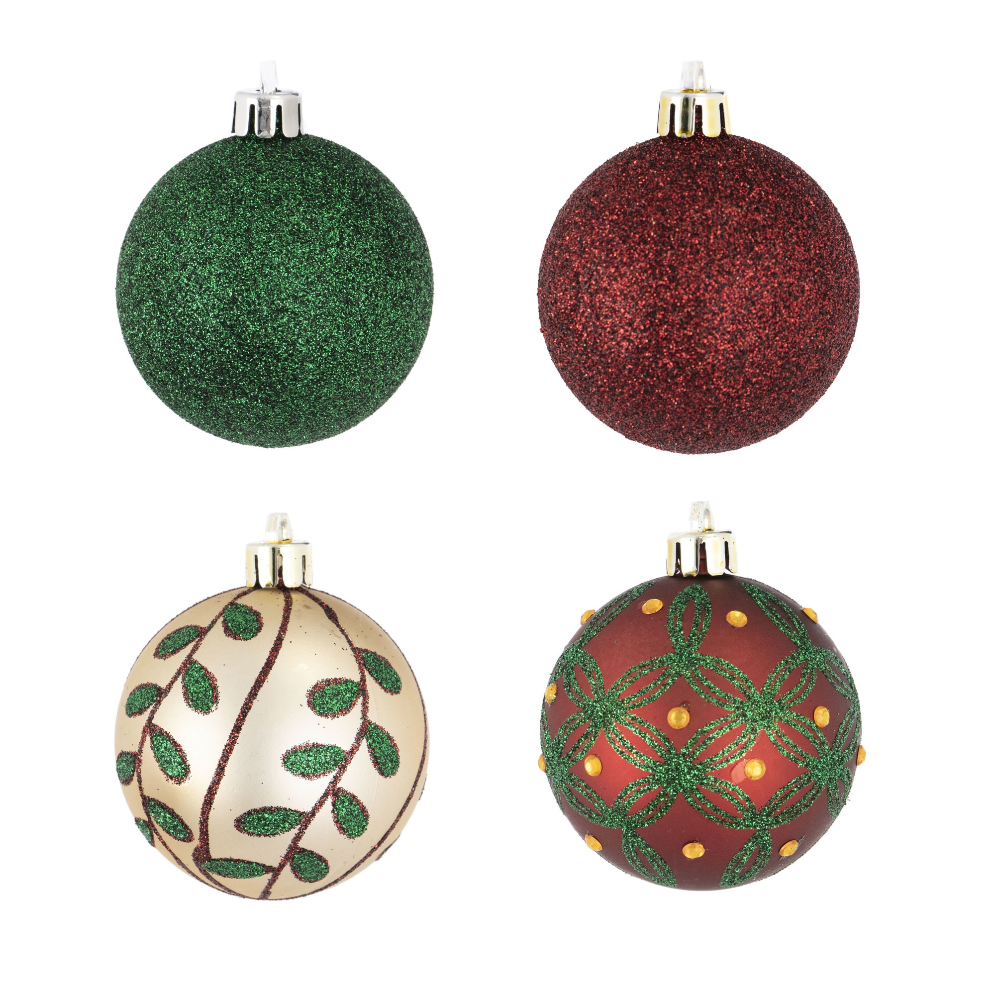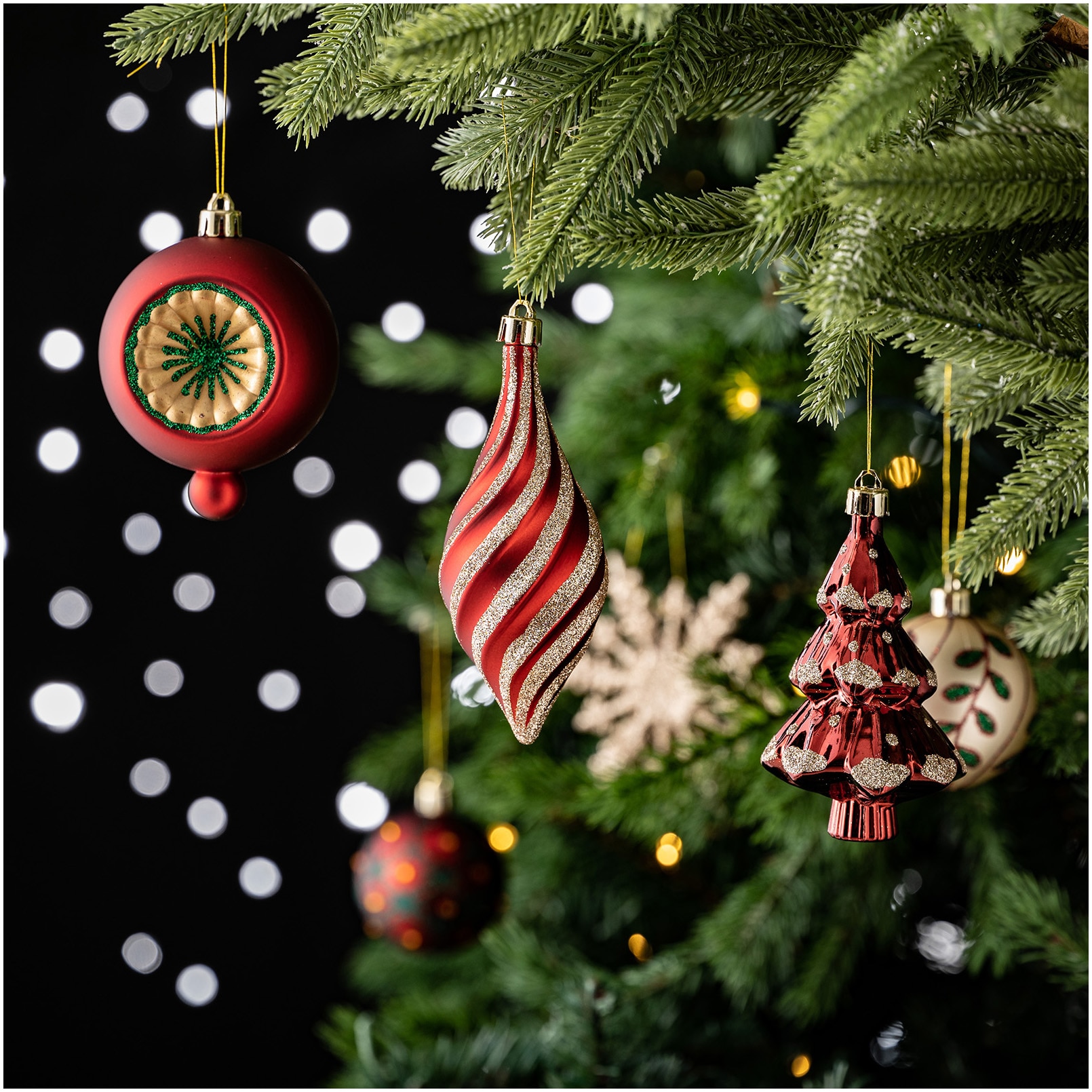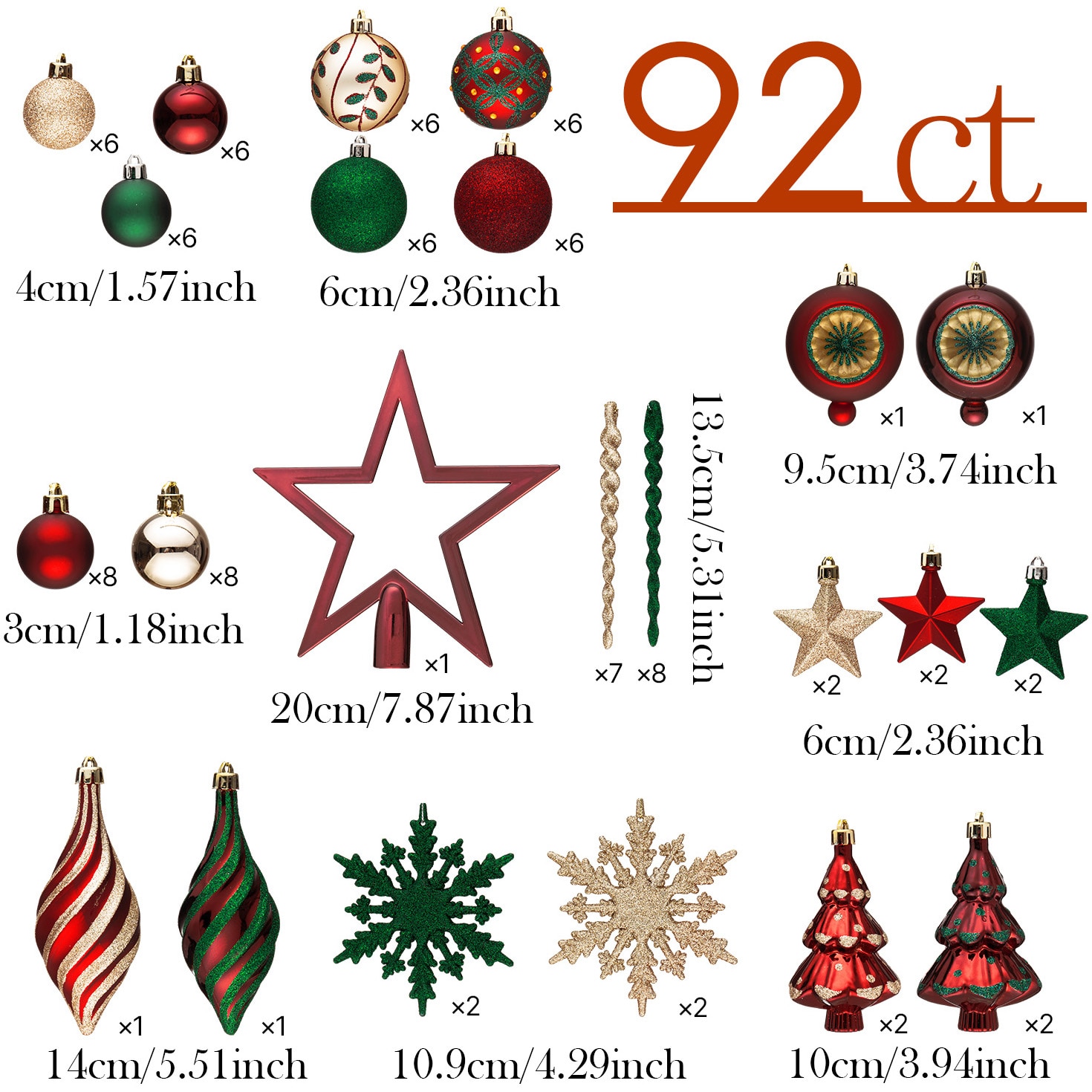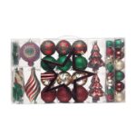 Set 92 de ornamente brad Kring, diverse forme si dimensiuni, Verde/Rosu/Auriu