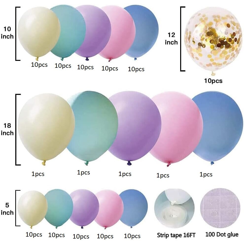 Set baloane si decoratiuni aniversare, baloane latex pentru arcada, baloane macarons, 117 PCS TZ-PD0018