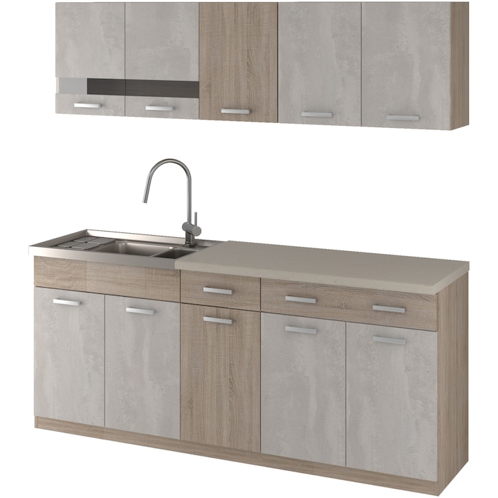Set bucatarie Asaro Melpo, 200x60x85 cm, culoare Gri/Sonoma
