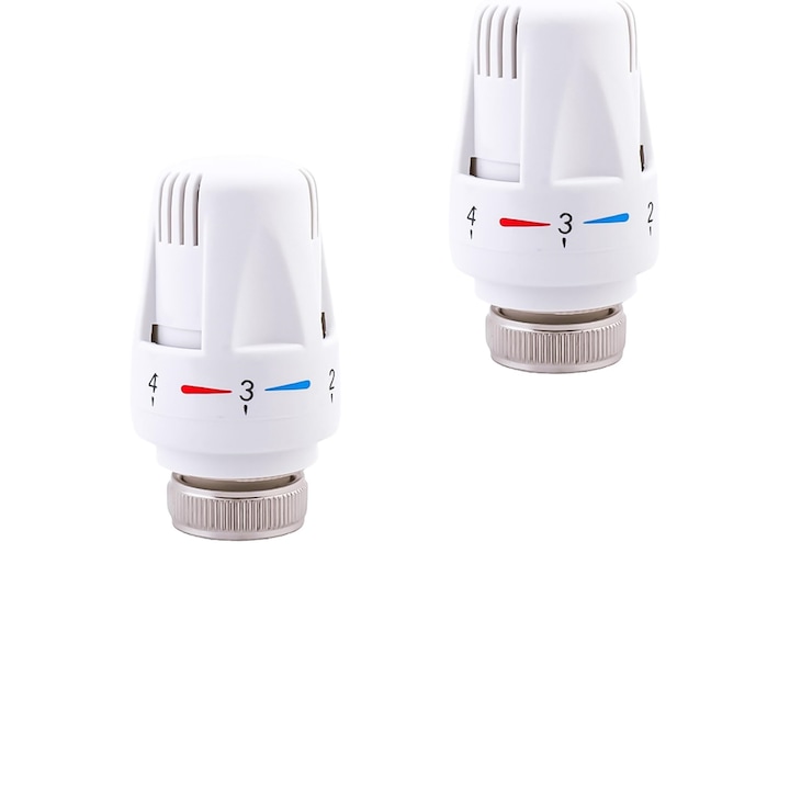 Set de 2 capete termostatice Kromini, 30 x 1.5 mm, supapa pentru radiator cu setare zero, functii de ajustare, alb