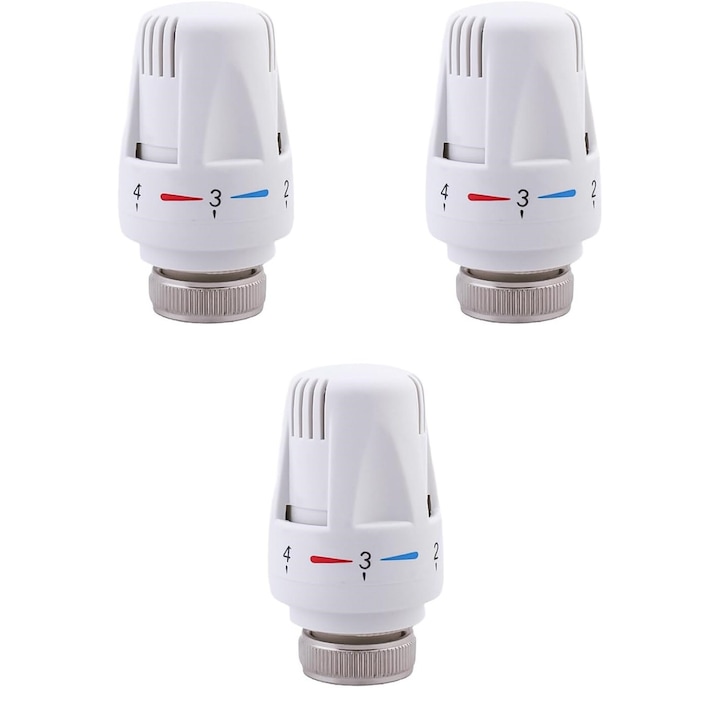 Set de 3 capete de termostat Molbory, pentru filet M30 x 1, 5, pentru radiator, alb